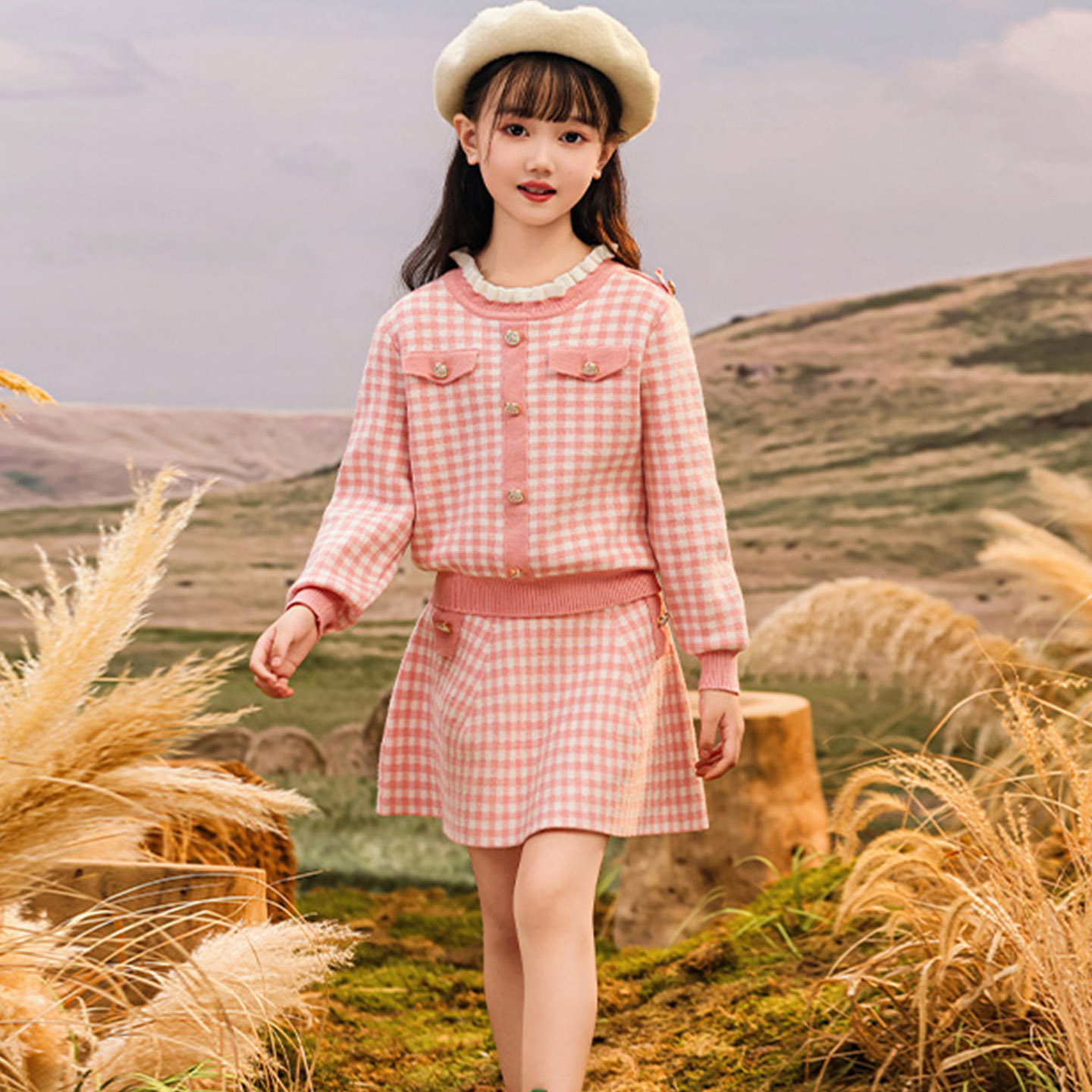 女童小香风毛衣套装连衣裙2025新款秋装儿童针织两件套童装短裙子