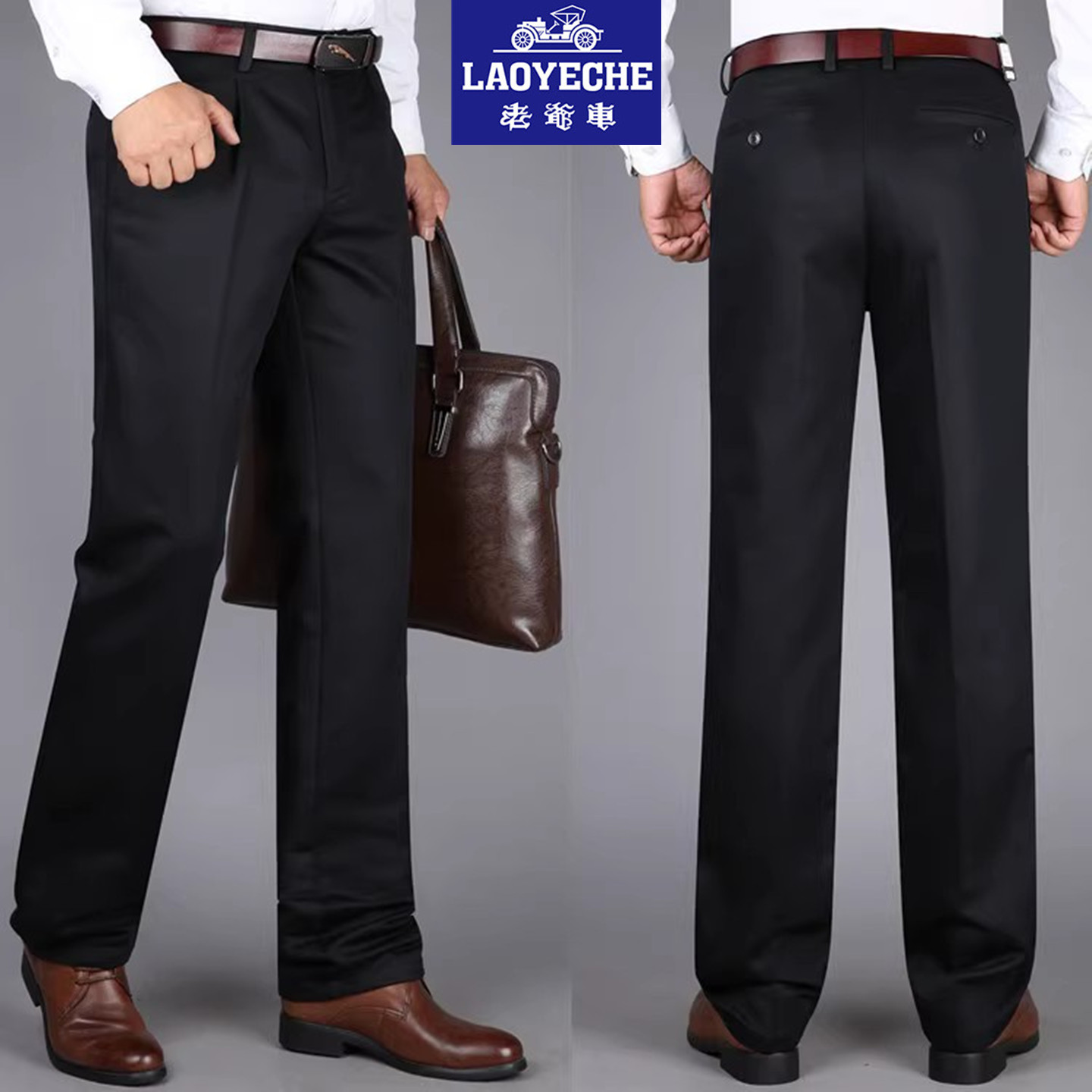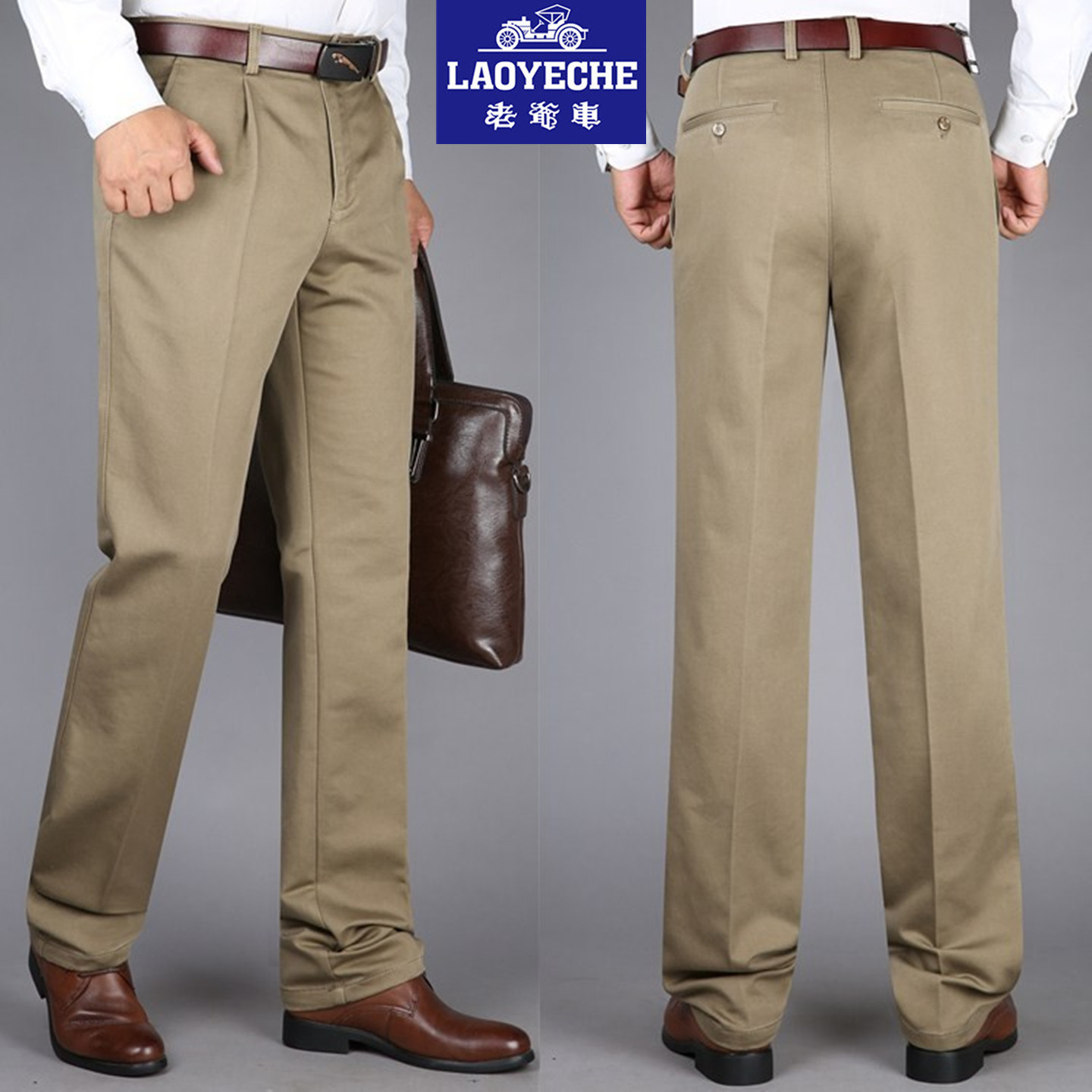老爷车中老年双褶纯棉休闲裤秋冬厚款男裤高腰深裆宽松爸爸长裤子