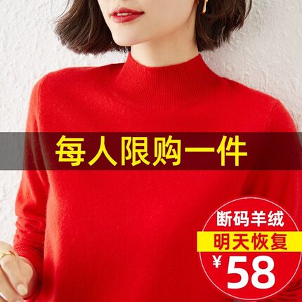 【特价处理羊绒衫】女宽松大码羊毛衫半高领洋气打底毛衣针织衫
