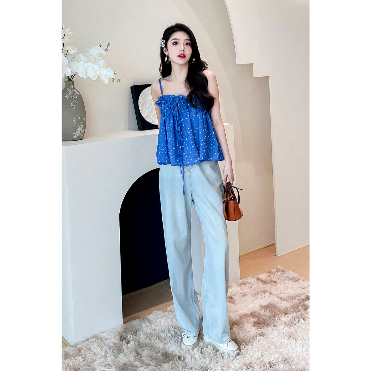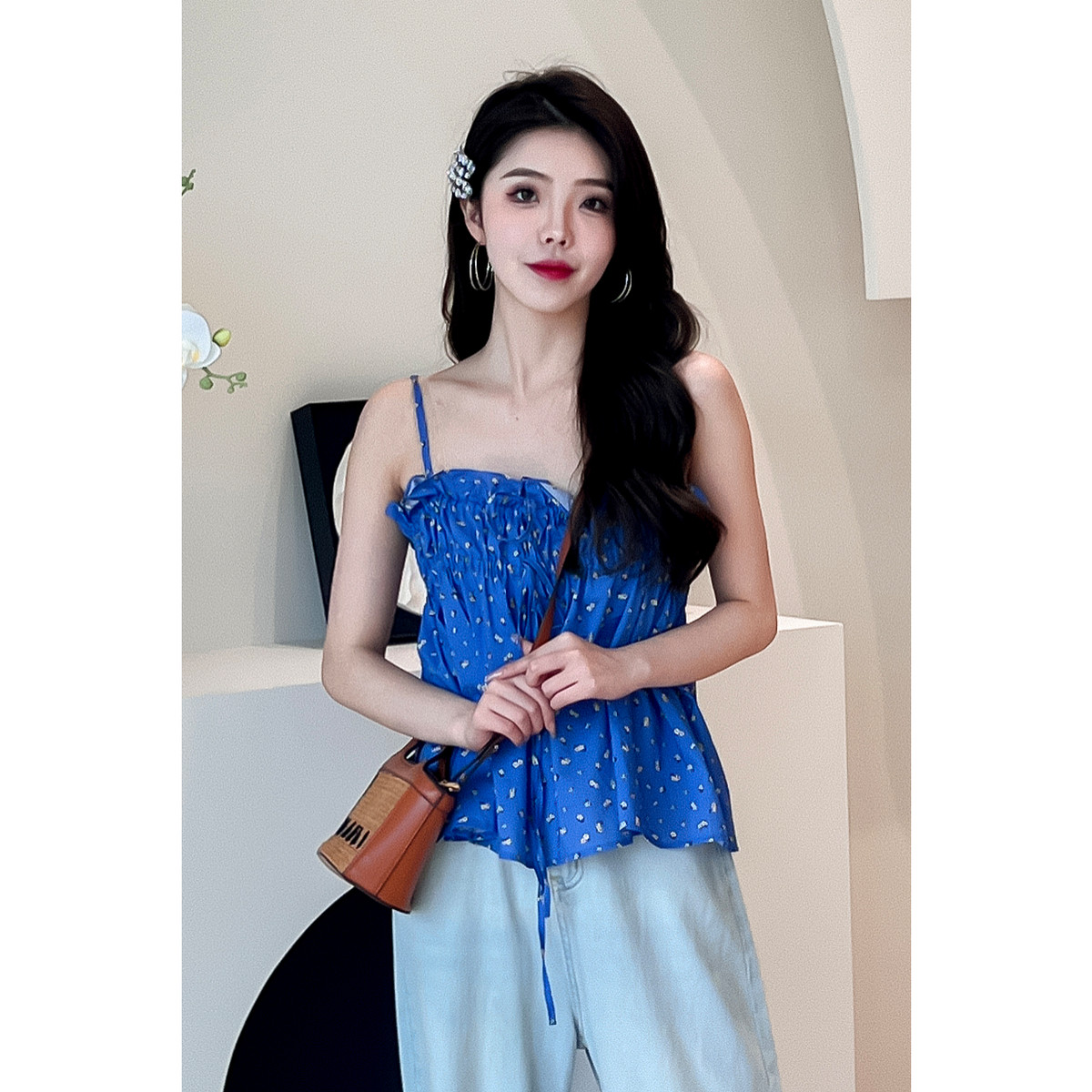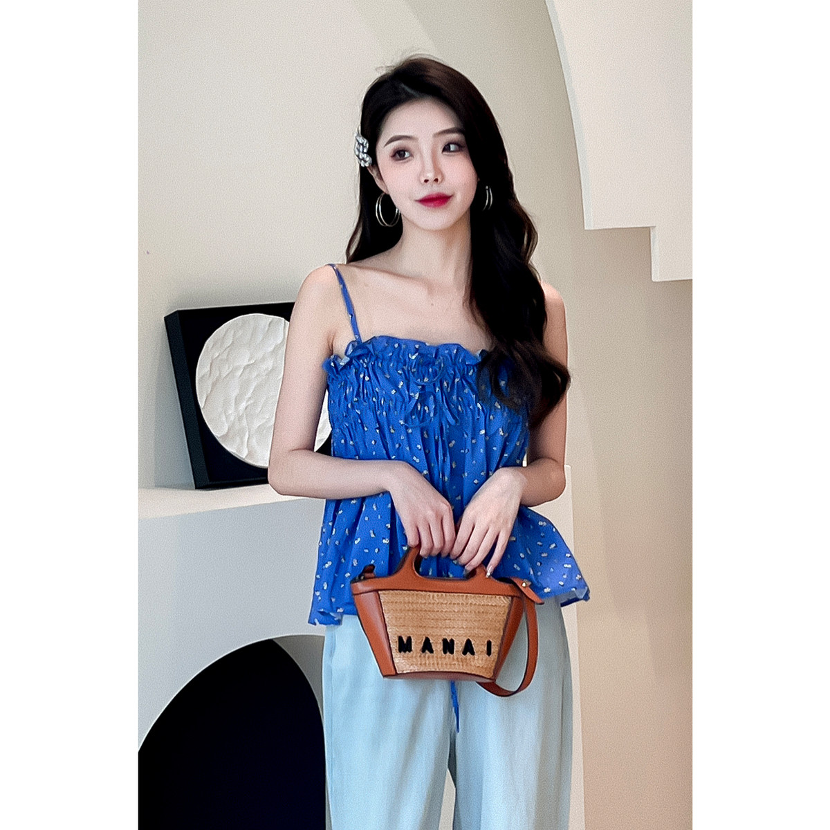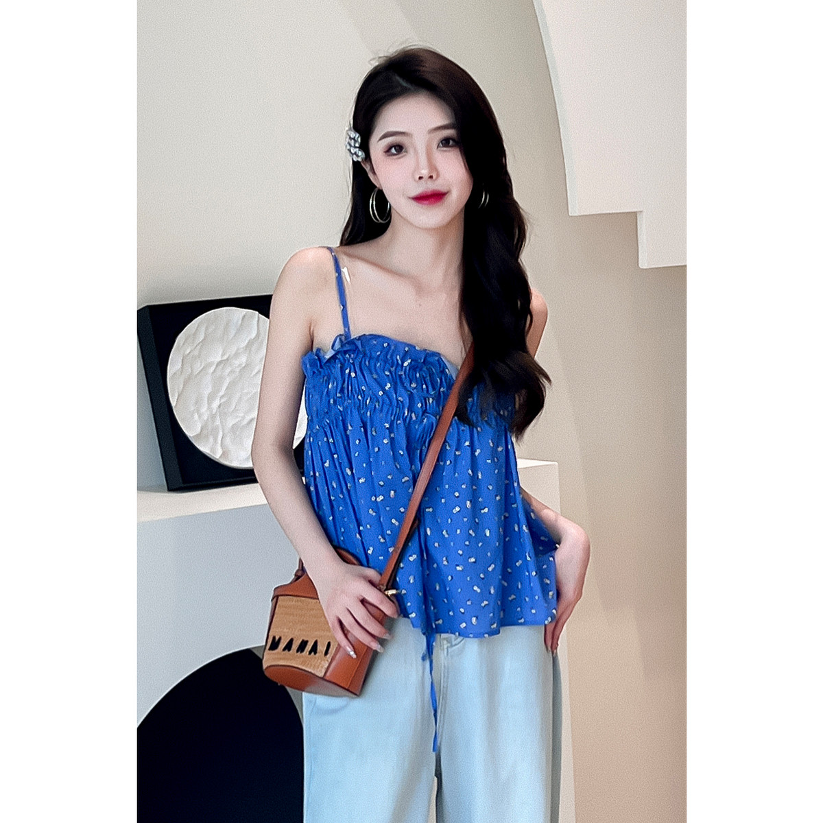 诗凡黎克莱因蓝清新碎花吊带衬衫2024夏新款洋气小衫轻熟法式上衣