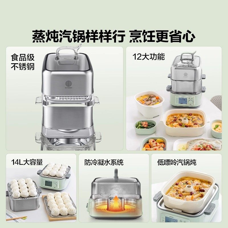 【年货节】北鼎全钢电蒸锅14L多功能家用蒸炖锅全自动预约蒸箱G76