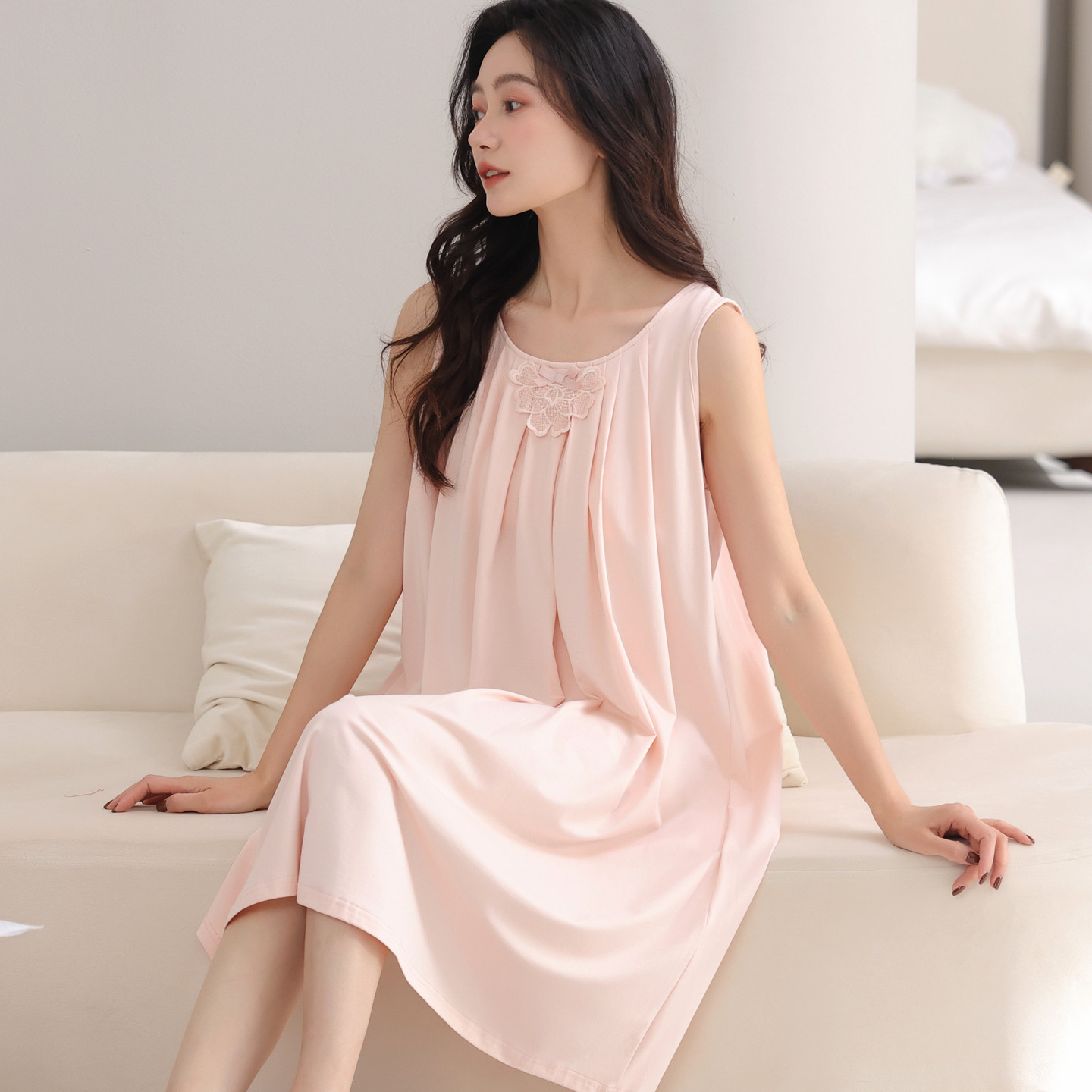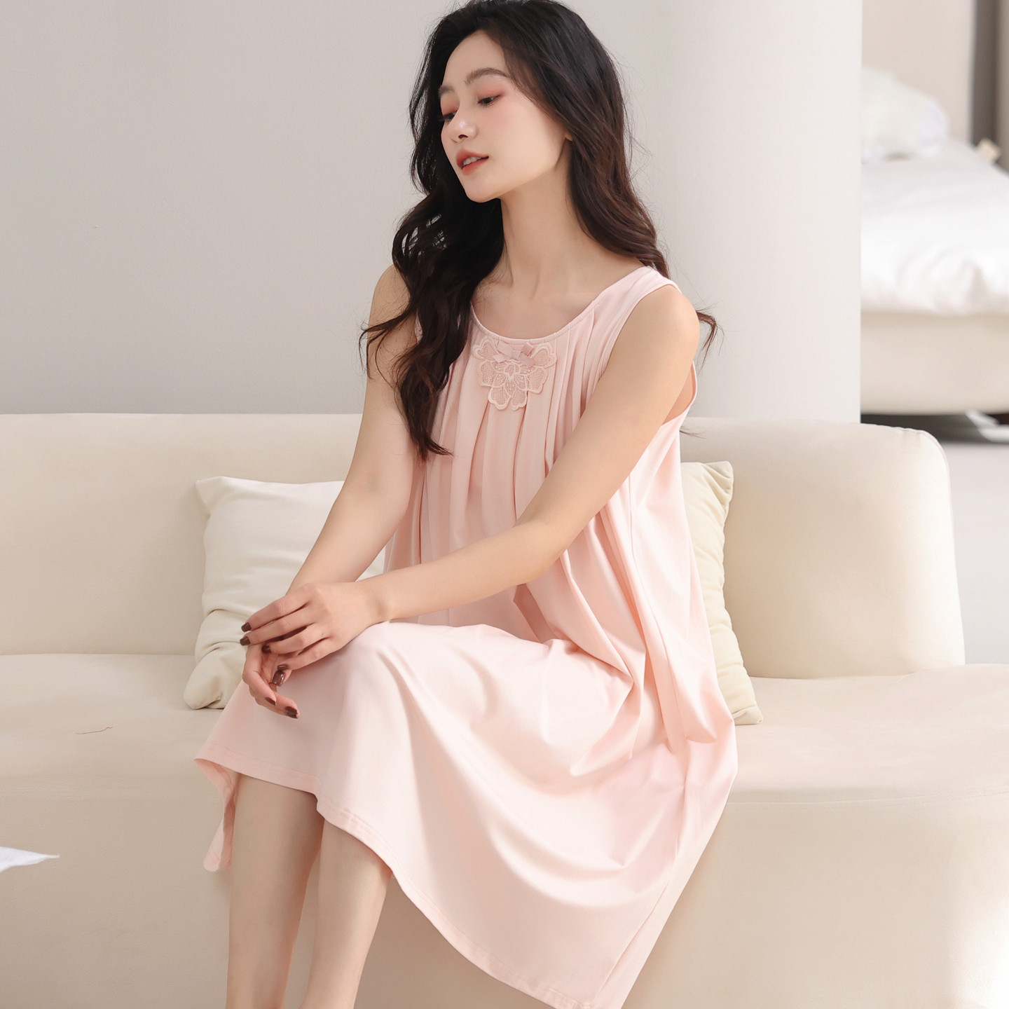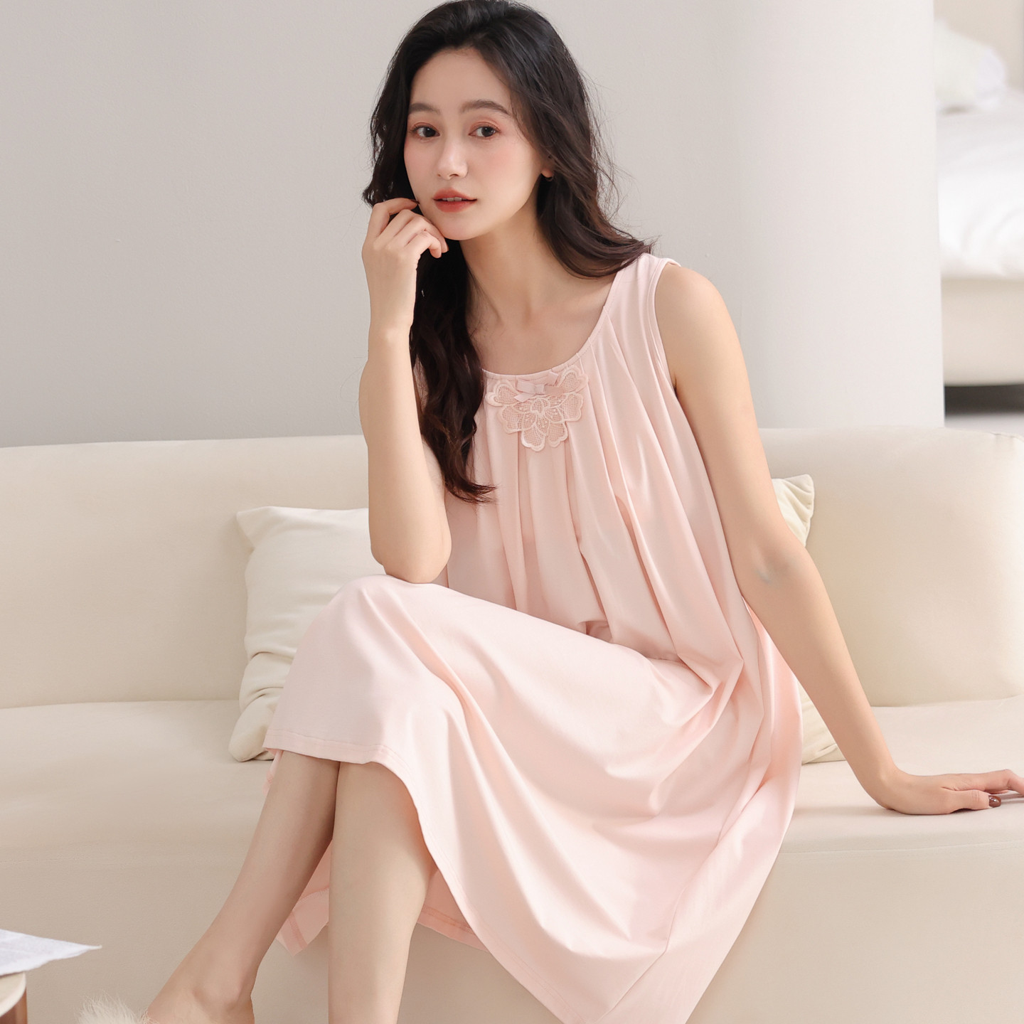 纯棉新款夏天睡衣女无袖背心中长薄款家居服舒适连衣裙时尚可外穿