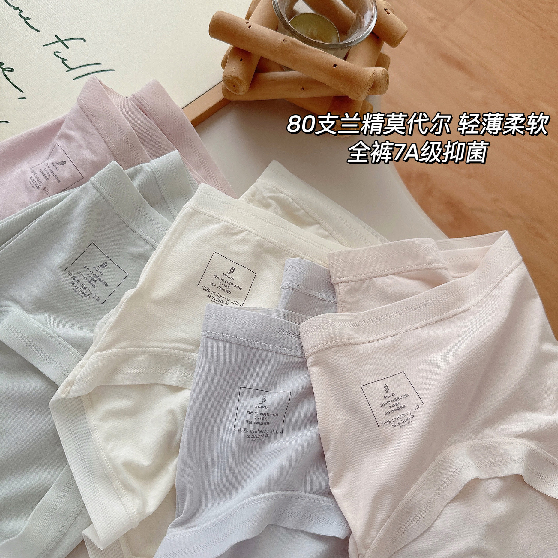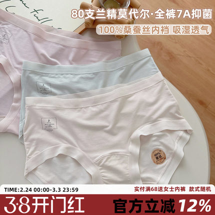 80支兰精莫代尔轻盈裸感内裤女柔软桑蚕丝裆中腰女士三角裤7A抑菌