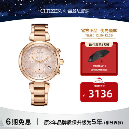 西铁城旗舰店xC系列粉金色三眼计时时尚优雅光动能女士手表FB1452