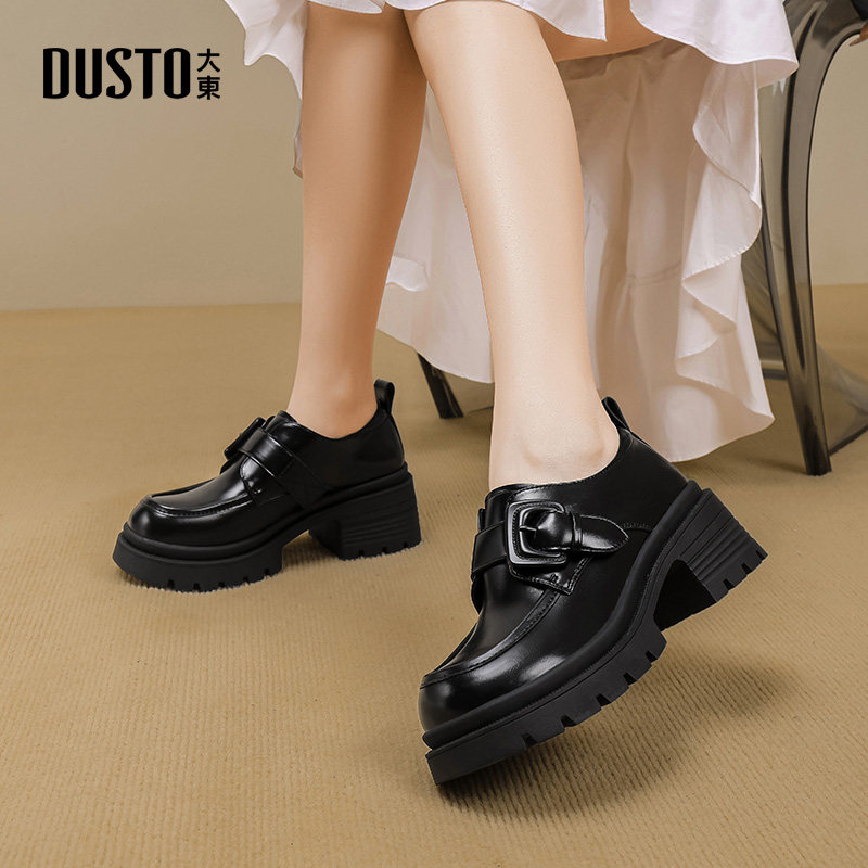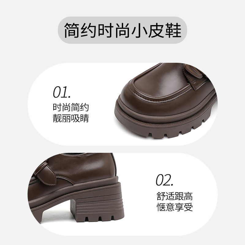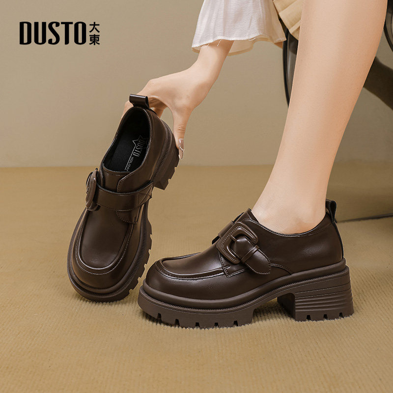 大东女鞋2025秋季新款英伦小皮鞋增高百搭深口鞋圆头通勤厚底单鞋