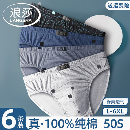 浪莎男士三角内裤纯棉透气男生短裤头全棉薄款中老年大码裤衩高档