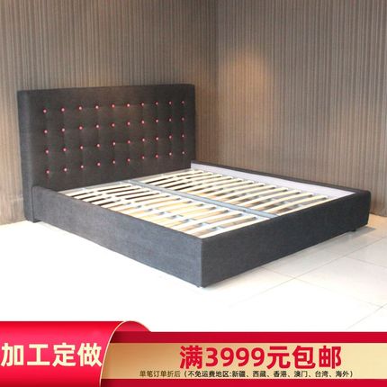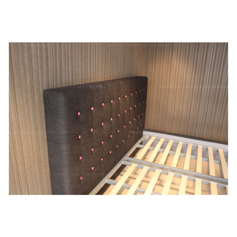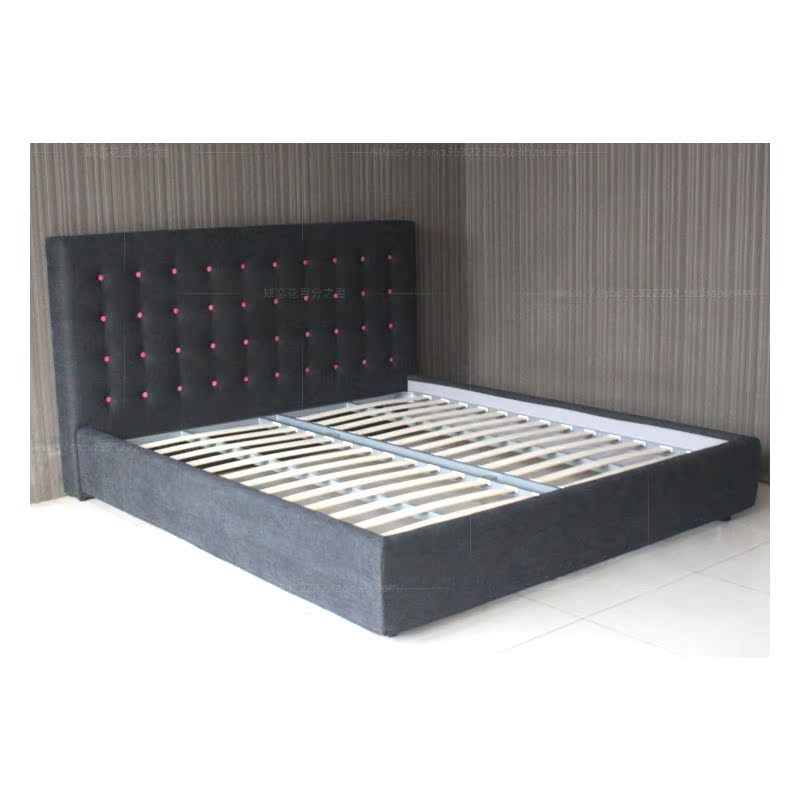 布艺床定制 灰色简约现代双人床 玫粉色拉扣高靠背床 1.8米床