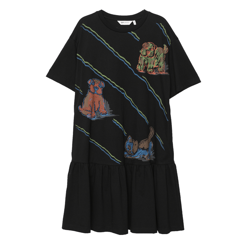 MOVEUP幻走2024夏季新款.FUN系列彩色涂鸦印花设计纯棉针织连衣裙