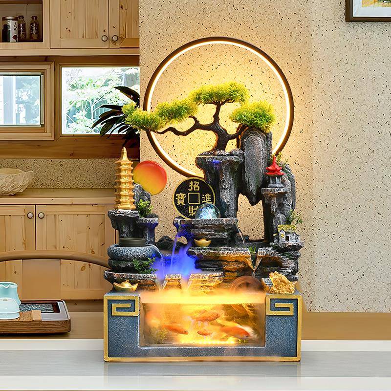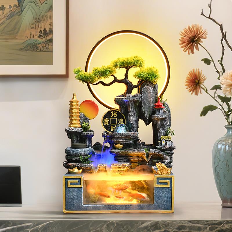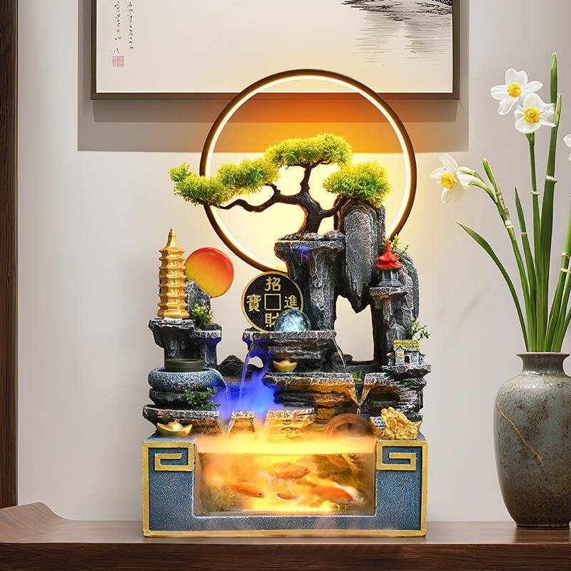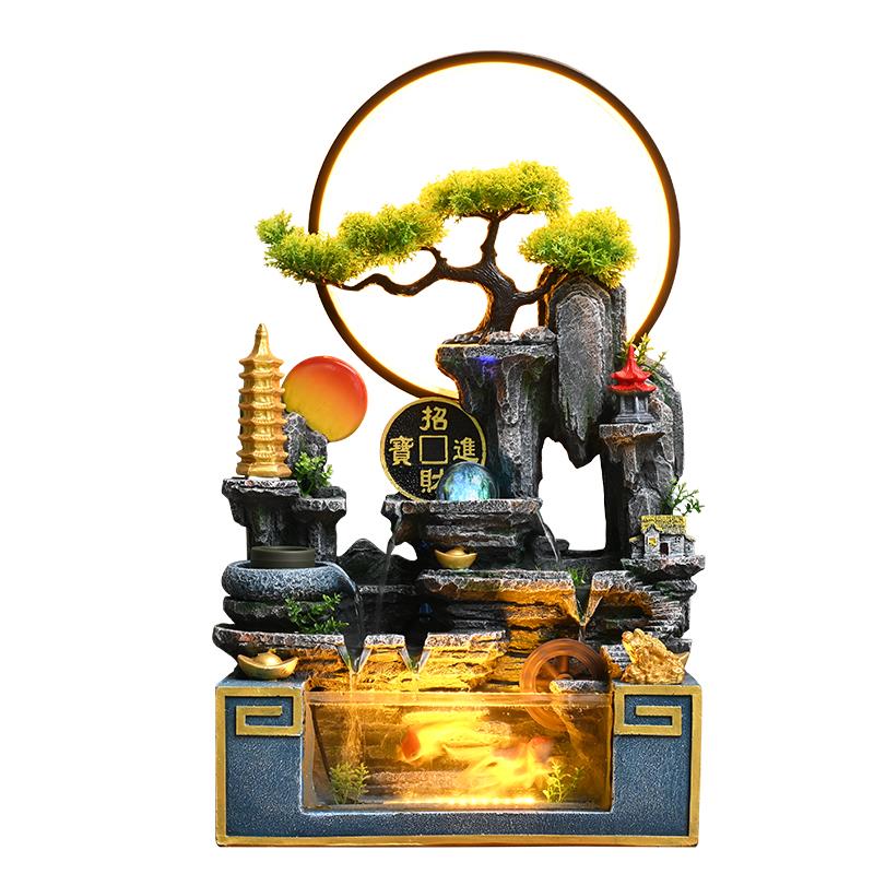 假山流水喷泉鱼缸循环水招财风水轮办公室客厅生财桌面装饰品摆件