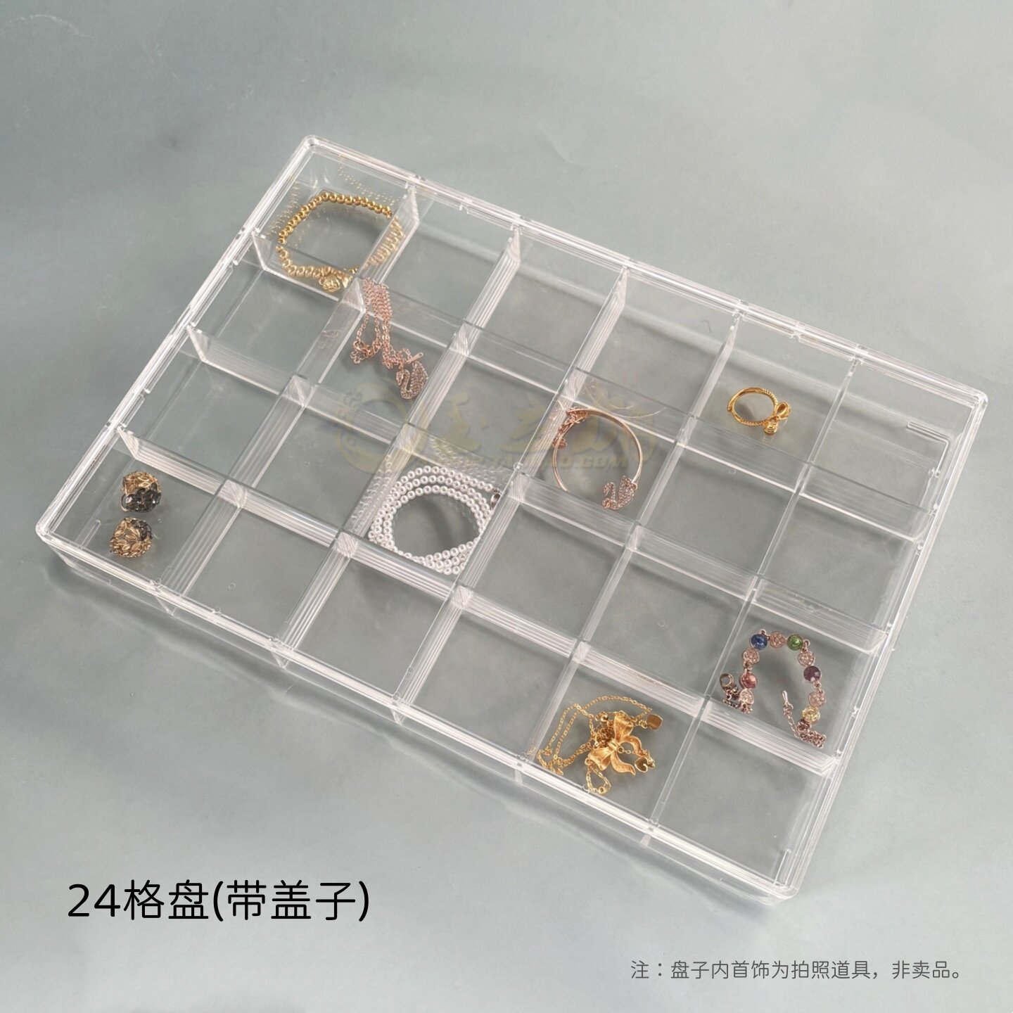 透明格子盘亚克力银饰展示盘珠宝手镯首饰玉石收纳盒带盖子散珠盘