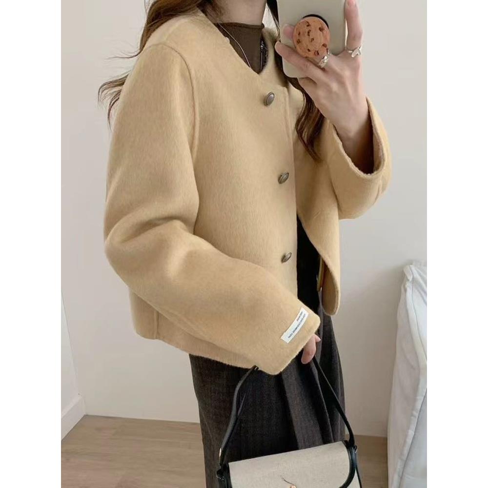 2025年小香风双面羊绒大衣女短款气质韩版圆领羊毛呢外套百搭新款