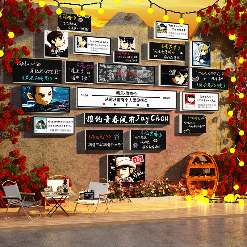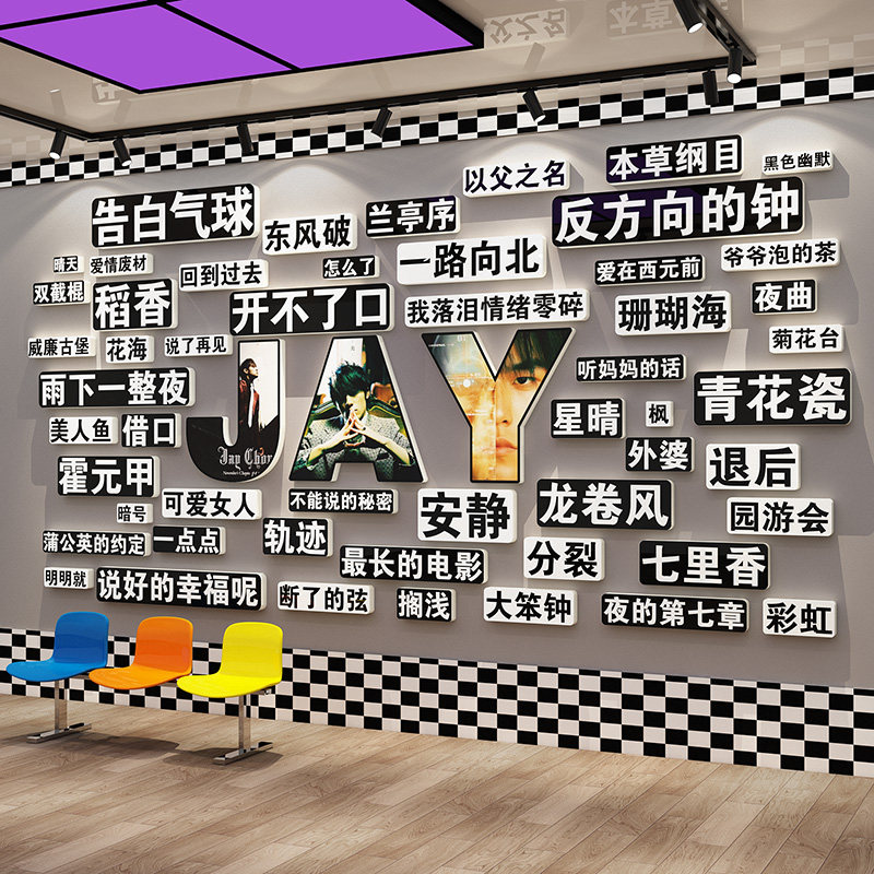 周杰伦黑胶唱片专辑歌词名房间打卡画墙面装饰工业风酒吧背景摆件