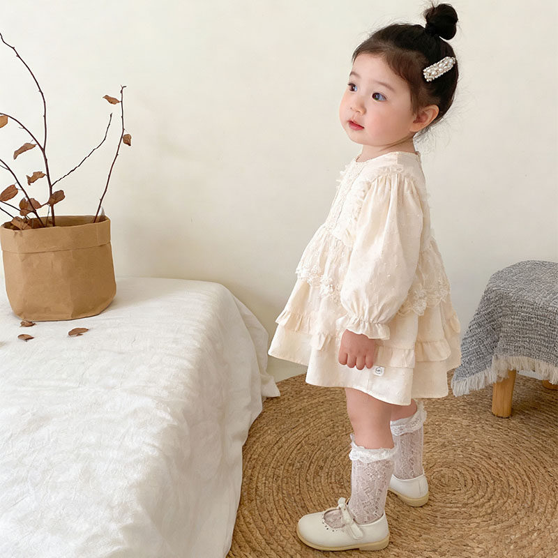 女宝宝女童甜美风蕾丝连衣裙春秋新款洋气公主蛋糕裙长袖裙子童装