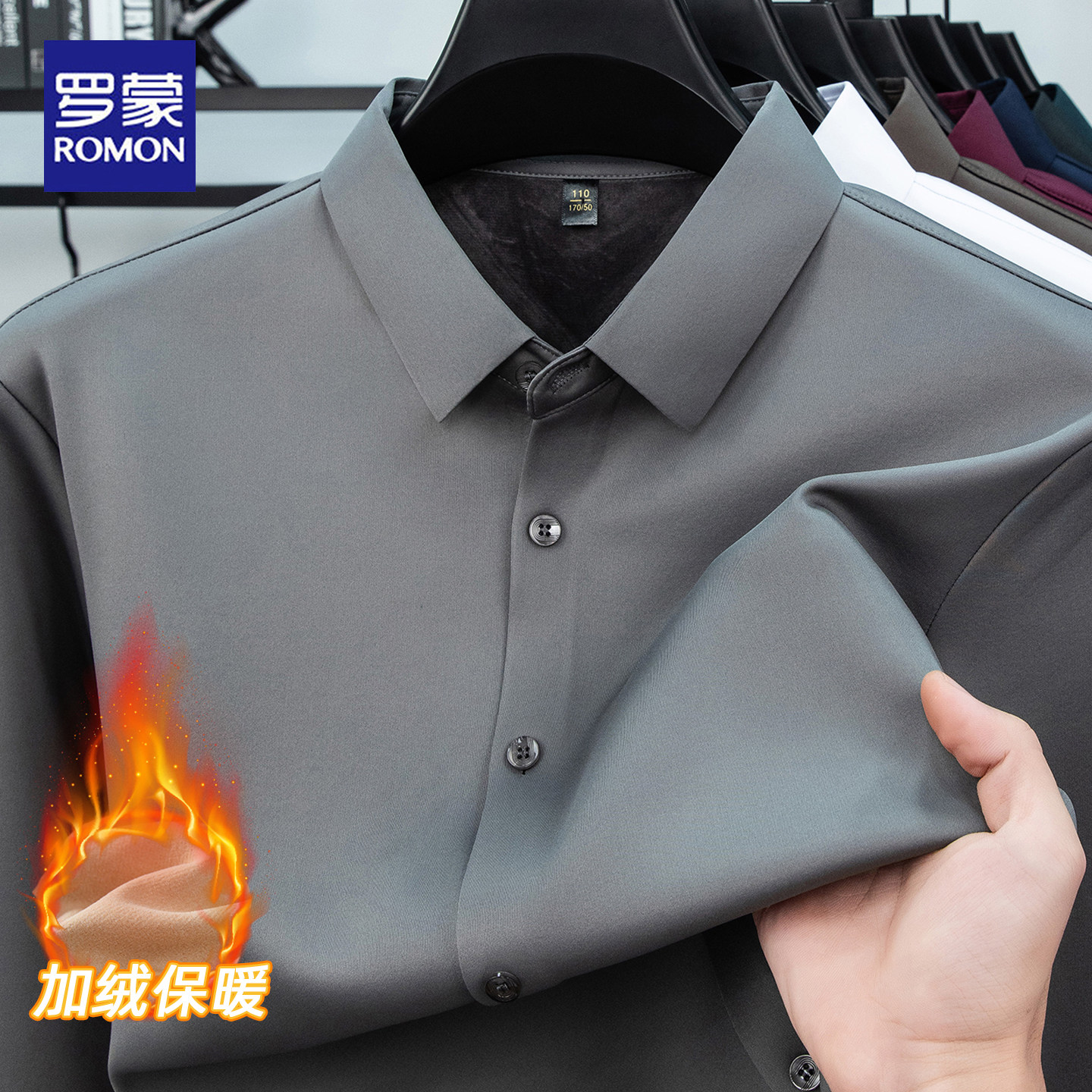 罗蒙2025冬季新款长袖衬衫男士加绒保暖翻领商务休闲厚款衬衣男装
