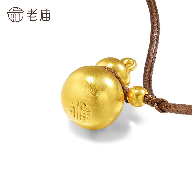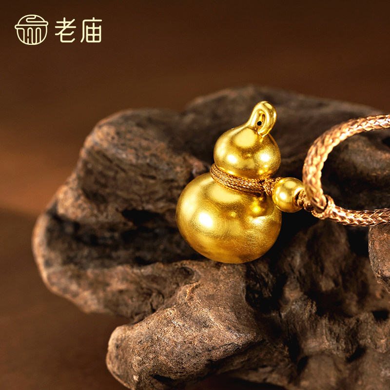 老庙黄金足金葫芦挂坠5D圆润葫芦光滑质感福禄满满吉祥百搭时尚