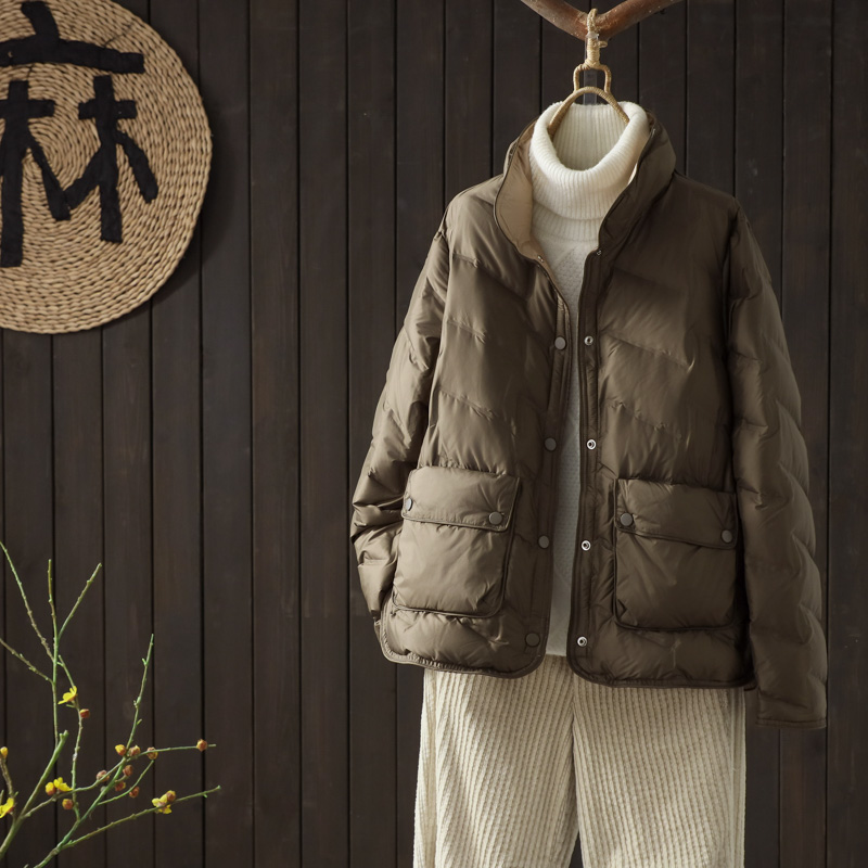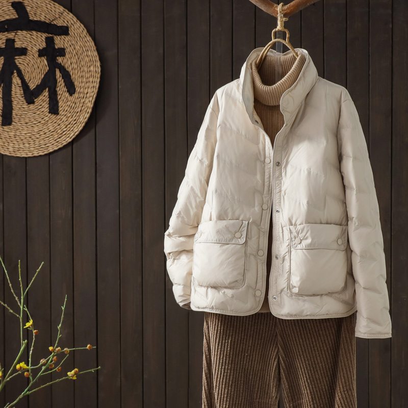 两面穿羽绒服女短款2024新款轻薄韩版时尚立领宽松白鸭绒保暖外套