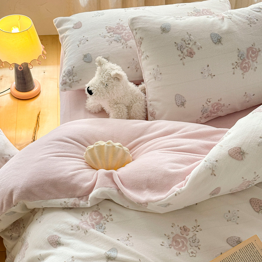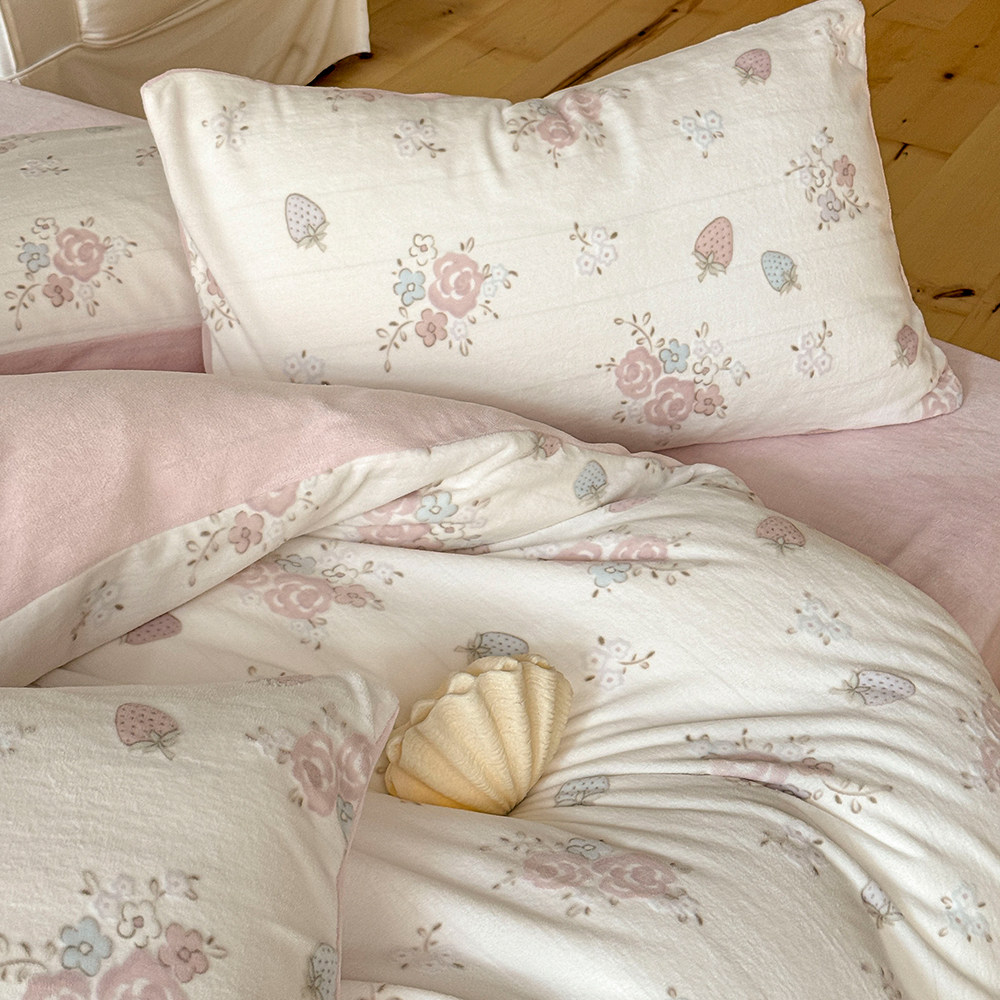 加厚小清新保暖牛奶绒四件套