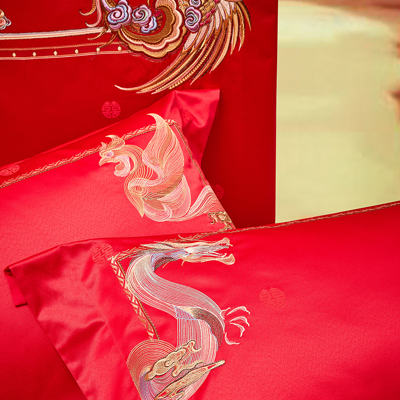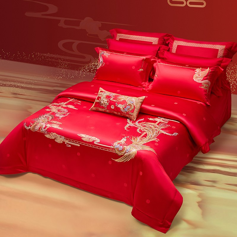 罗莱家纺新品结婚四件套床上用品大红色新婚喜被被套婚庆八件套