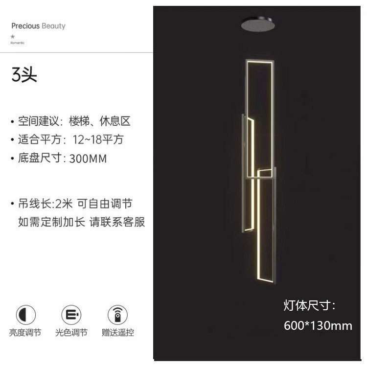 楼梯吊灯现代简约别墅复式楼中空loft旋转楼梯间极简超长方框灯具