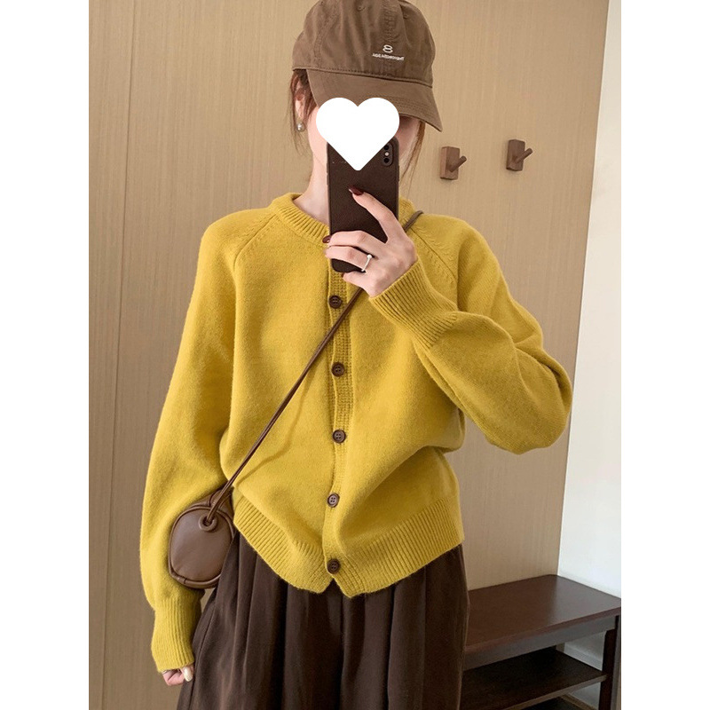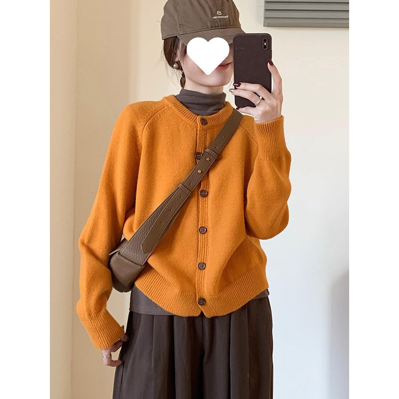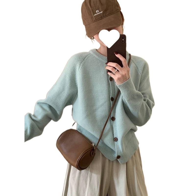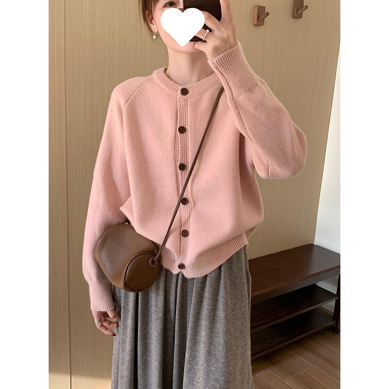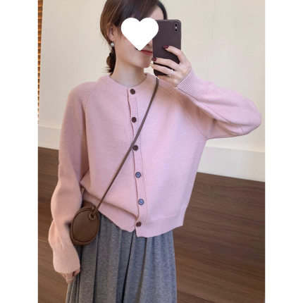 慵懒风纯色圆领单排扣针织开衫上衣女秋季宽松休闲百搭毛衣外套潮