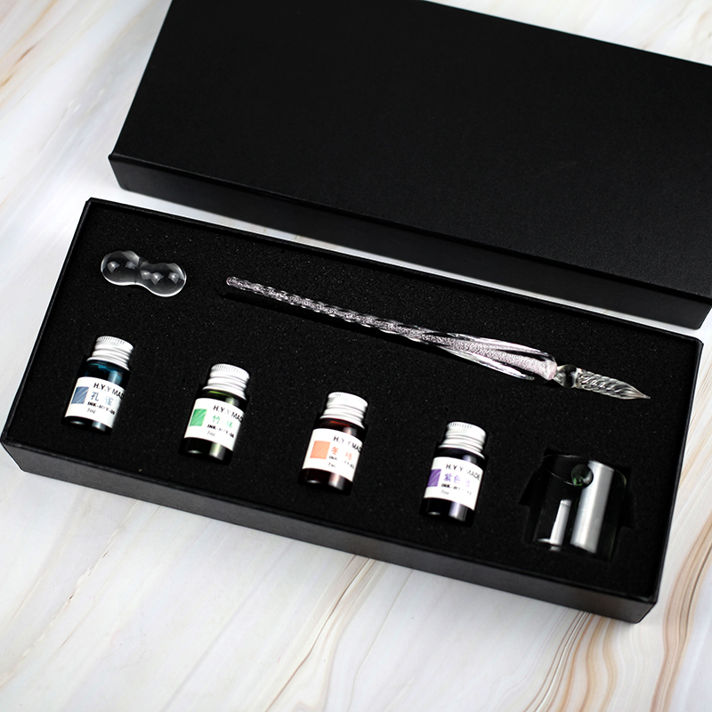 玻璃笔墨水套装网红蘸水笔渐变色手工水晶樱花沾水笔古风梦幻钢笔