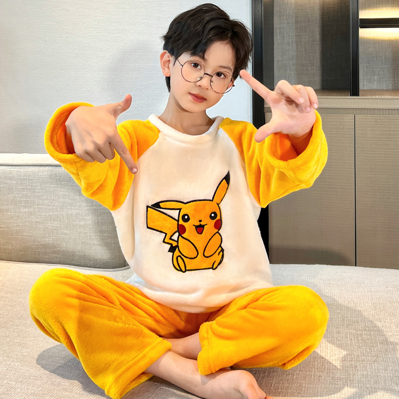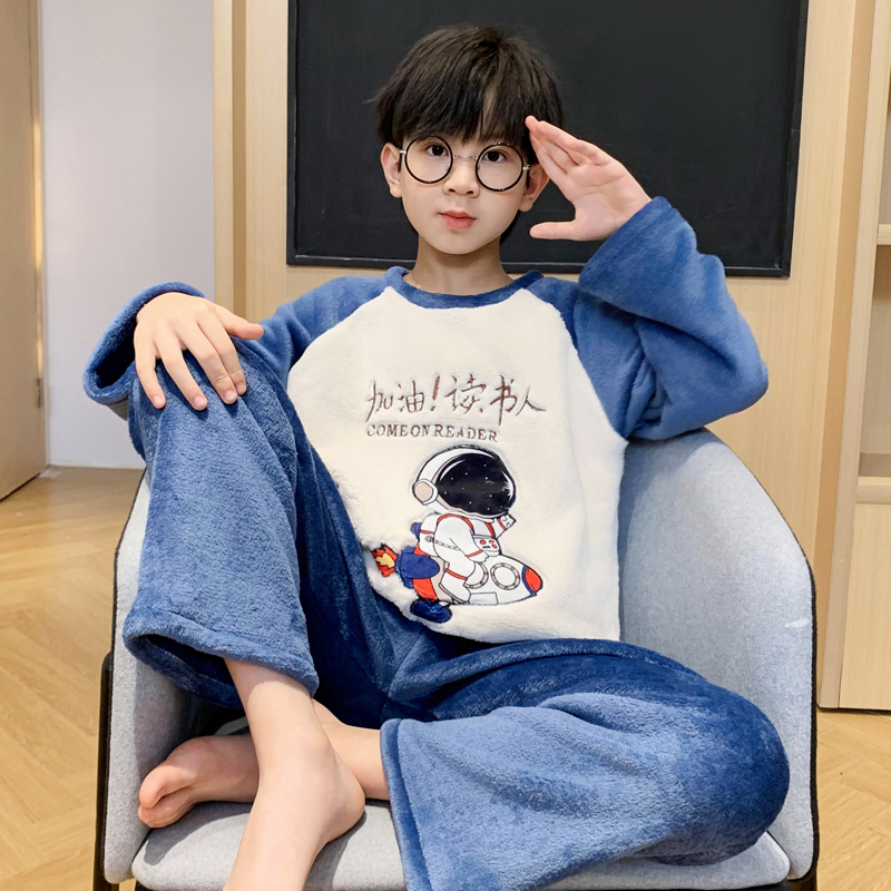 名侦探柯南法兰绒睡衣男童秋冬薄款中大童男孩青少年珊瑚绒家居服