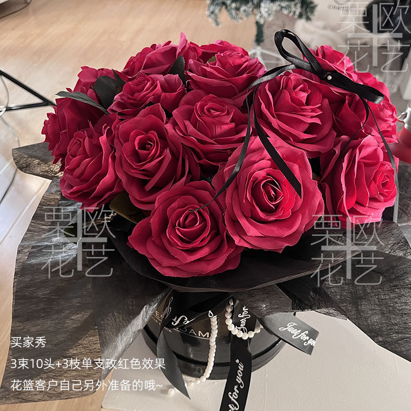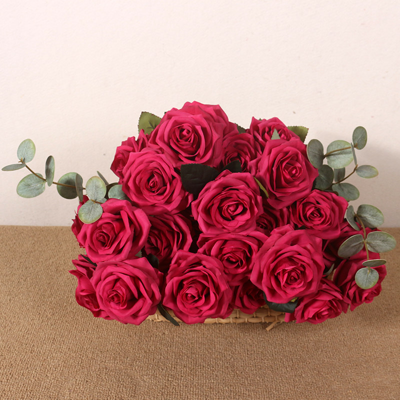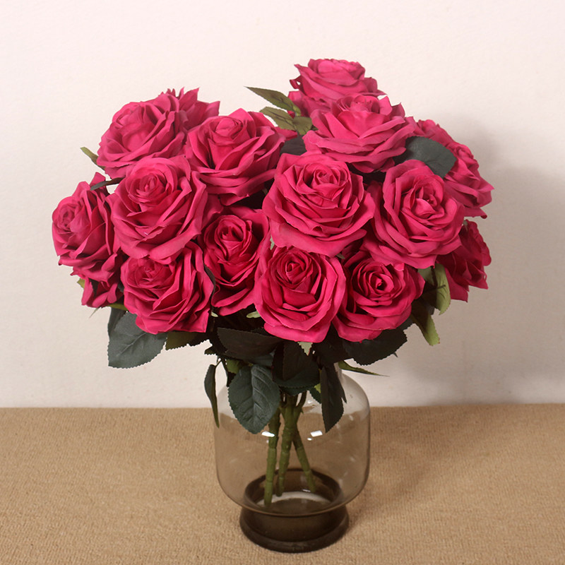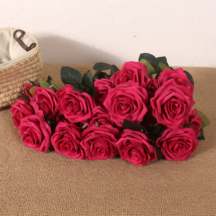 10头弗洛伊德玫红色玫瑰花仿真花束样板间橱窗搭配装饰高品质绢花