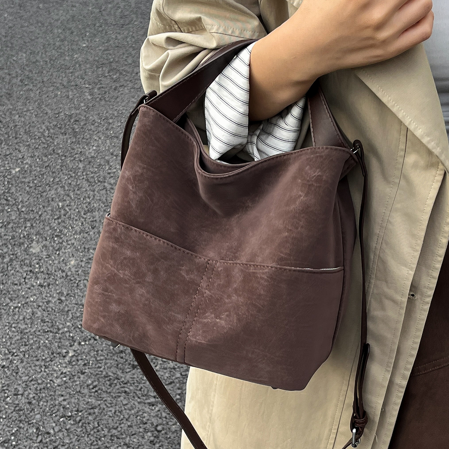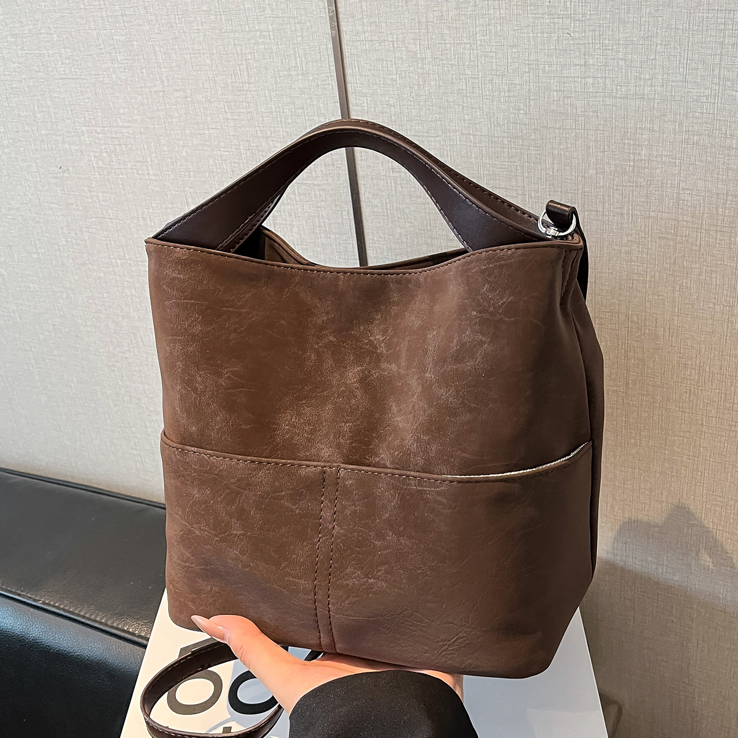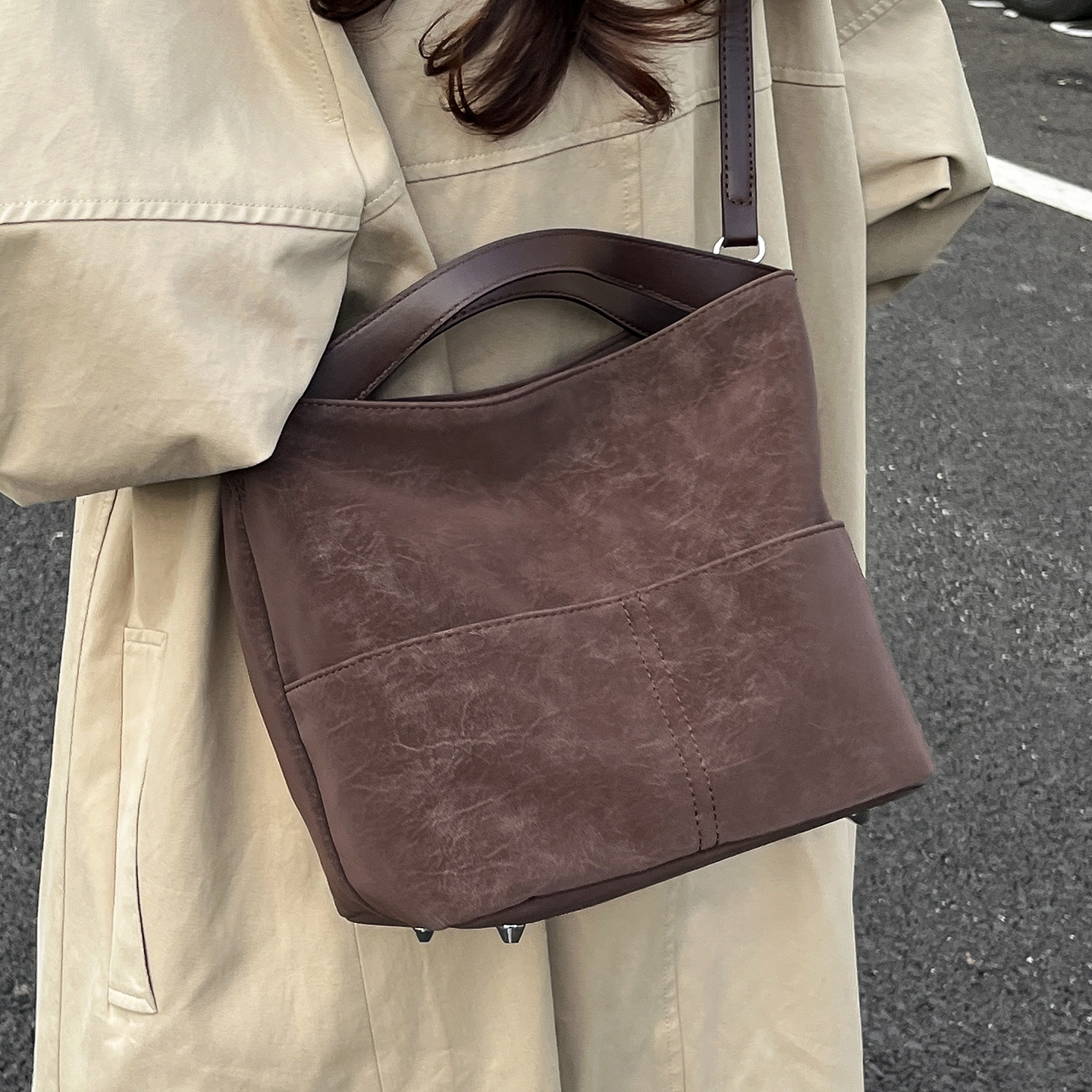 高级感复古手拎水桶包女2025新款秋季百搭质感时尚通勤单肩斜挎包