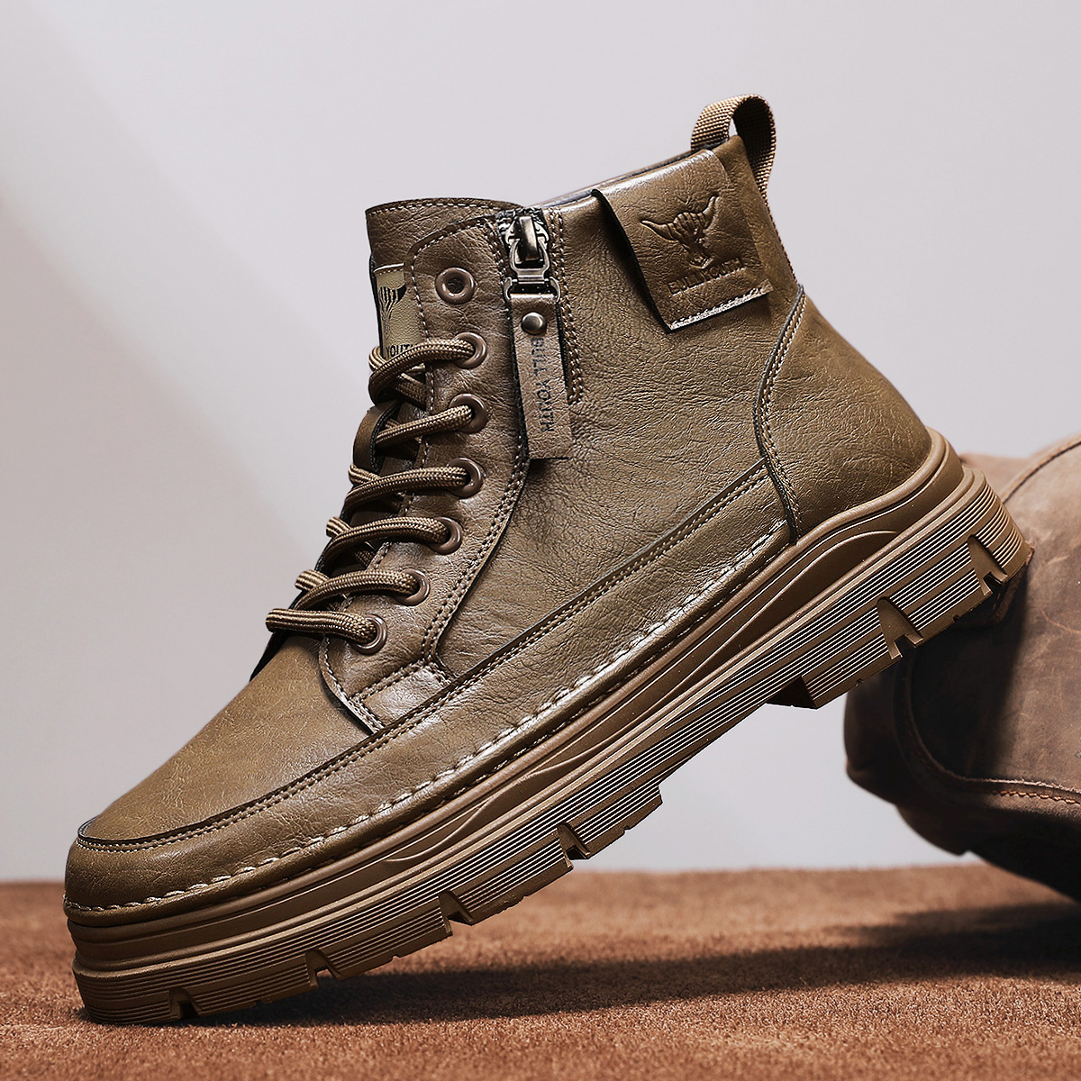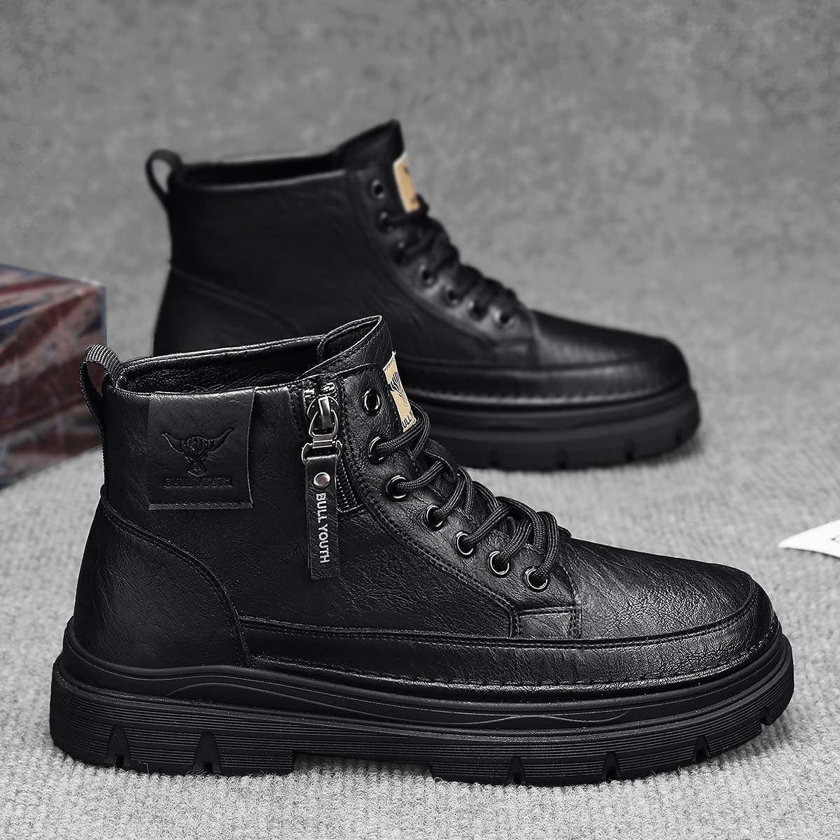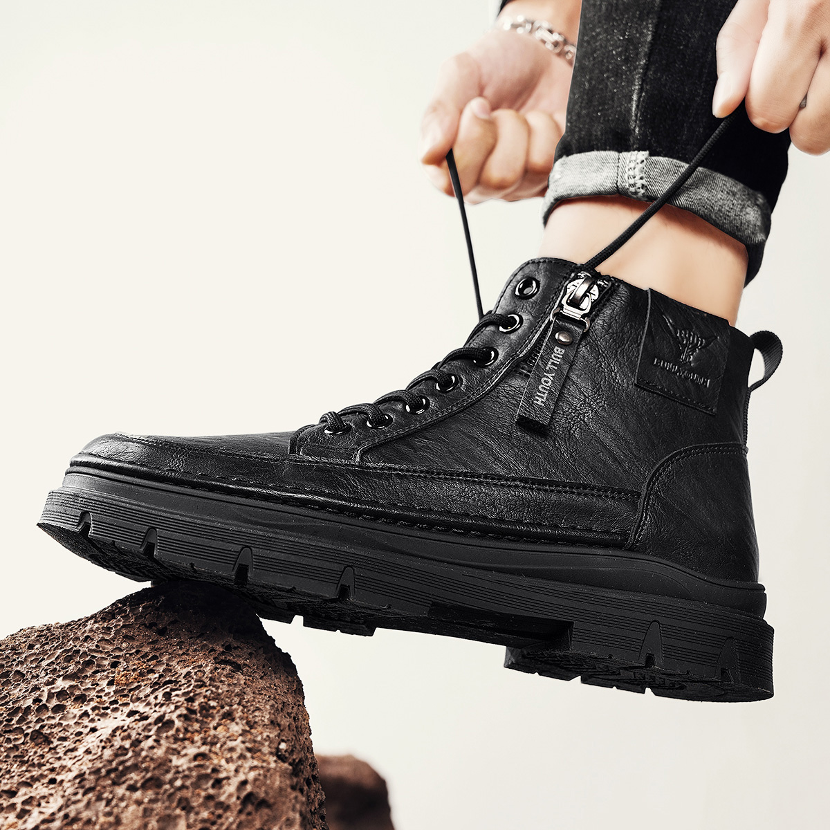 马丁靴高帮男鞋秋季皮面防水软底运动休闲增高英伦风黑色中帮皮鞋