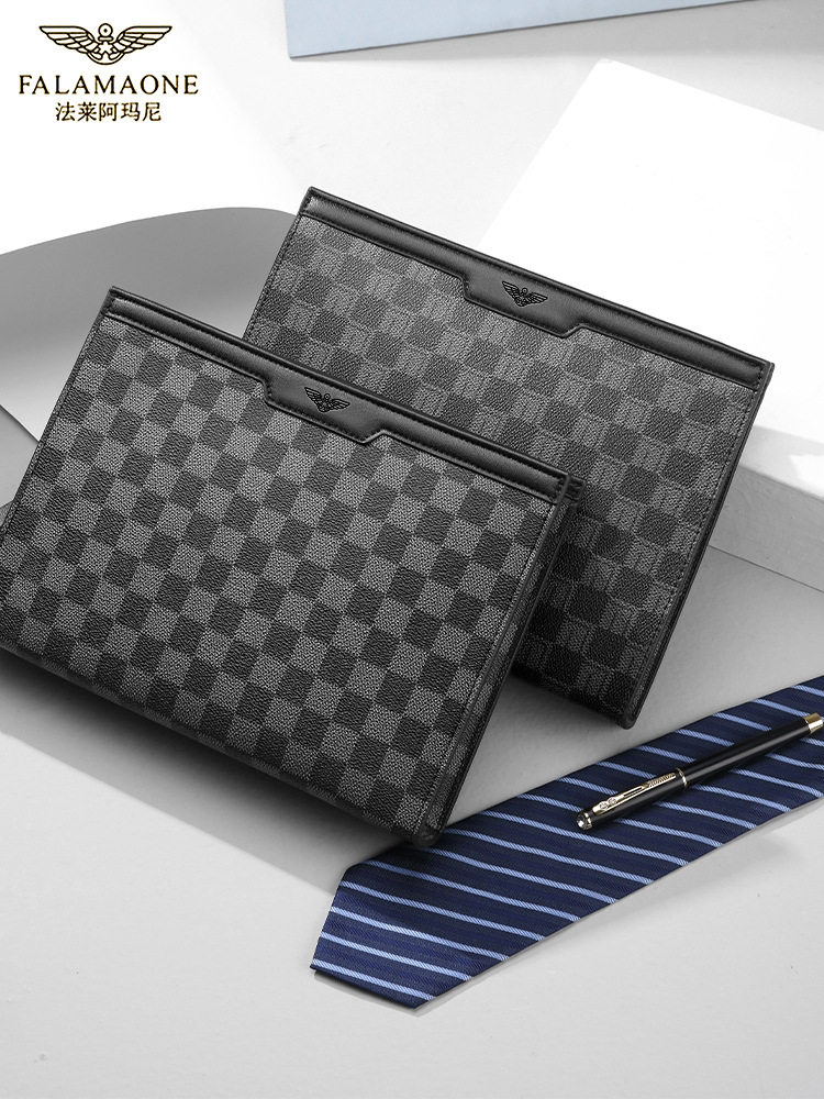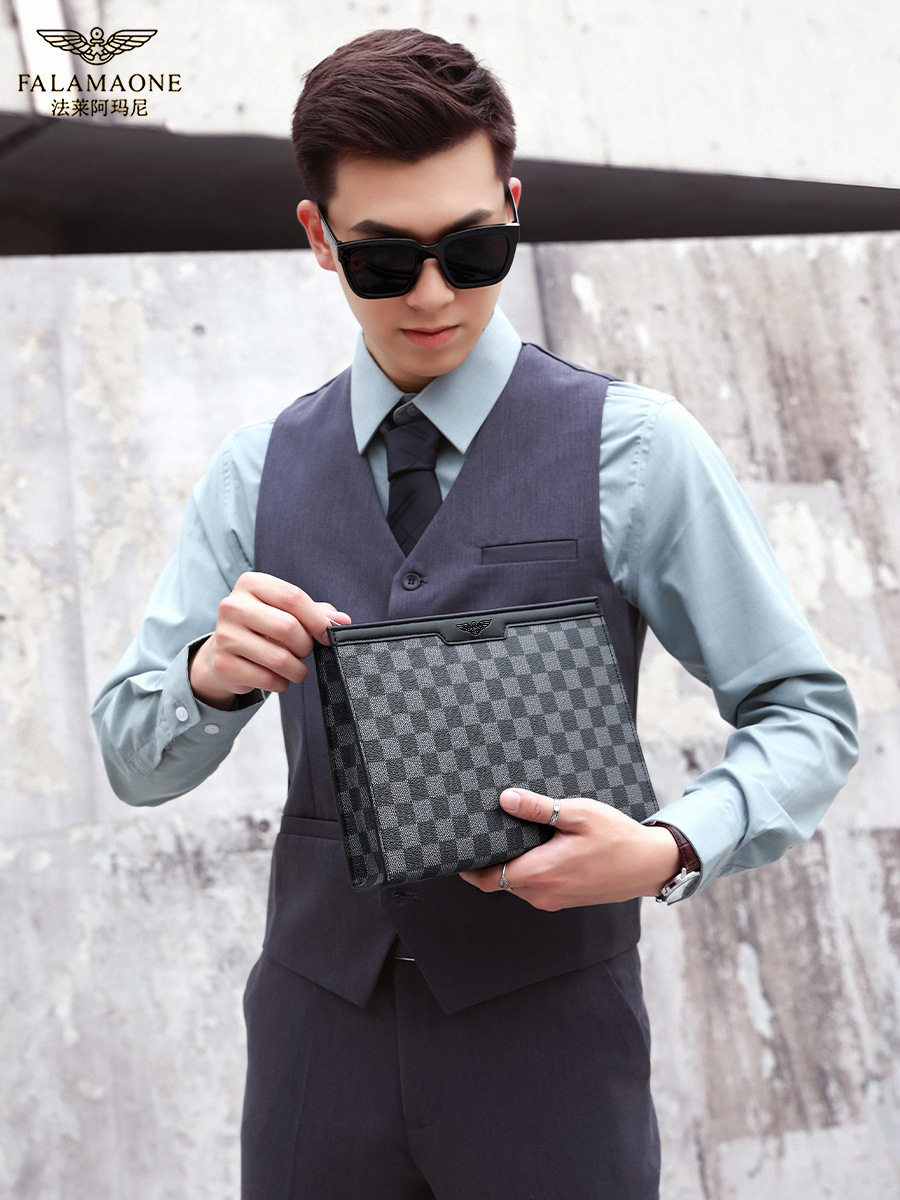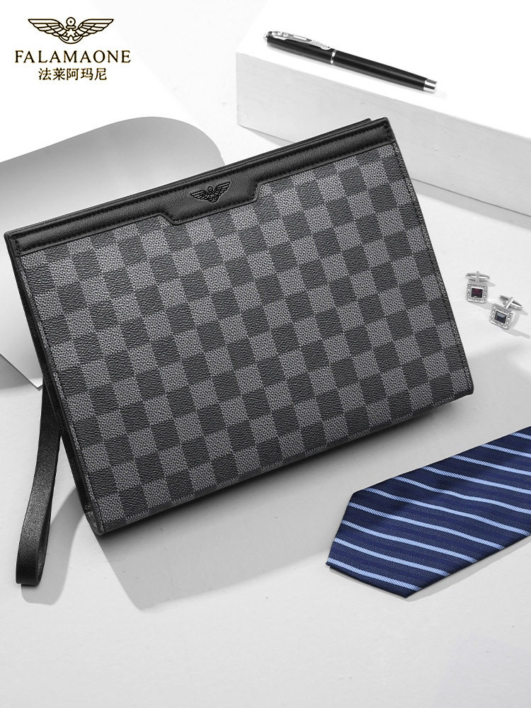 法莱阿玛尼轻奢格子男士手包休闲百搭夹包商务休闲男包