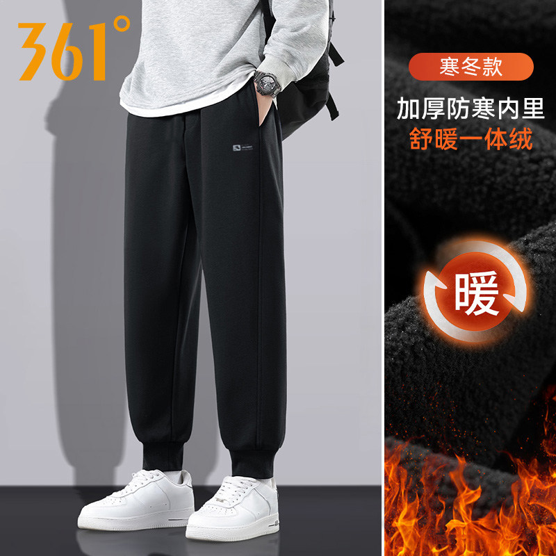 361度加绒运动套装男士冬季保暖针织外套长裤跑步休闲服装两件套