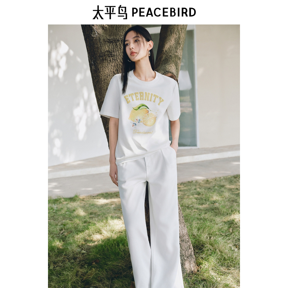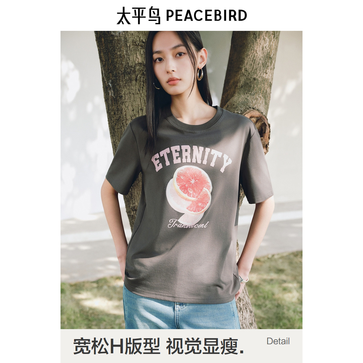 【凉感抗菌】太平鸟夏日清新水果图案短袖T恤25夏季宽松上衣