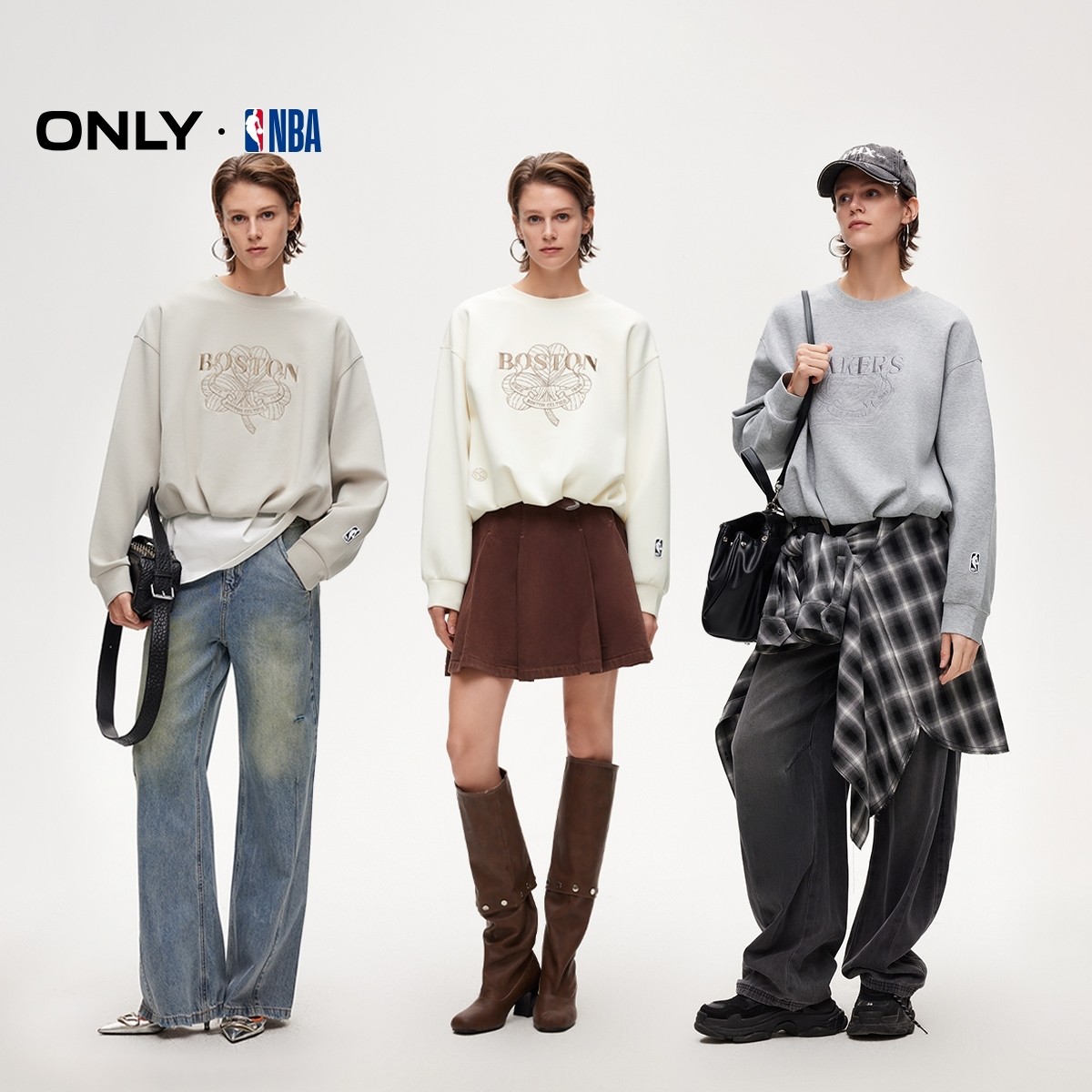 【NBA联名】ONLY2025冬季新款慵懒宽松花苞造型下摆纯色卫衣女