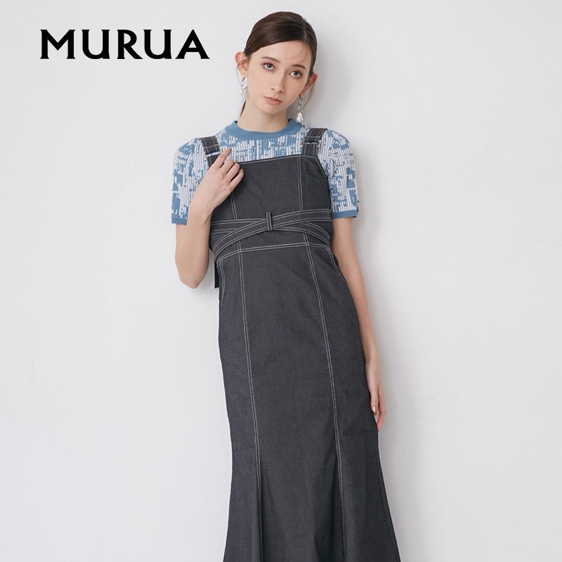 MURUA2024春季新款茶系穿搭前交叉腰带设计背带鱼尾裙0124203001
