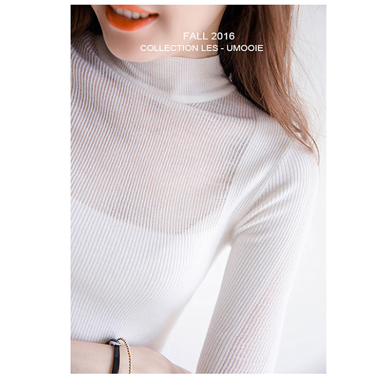 秋冬半高领原宿弹力长袖毛衣修身内搭打底衫毛针织衫女上衣