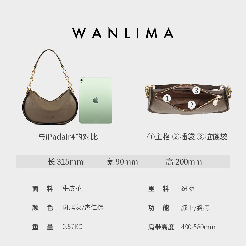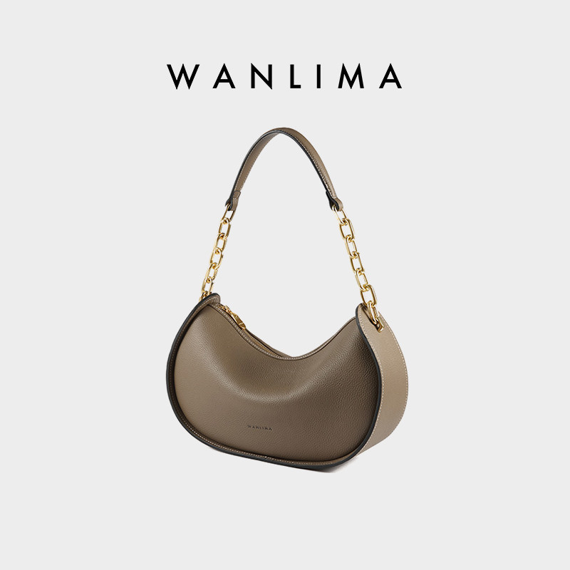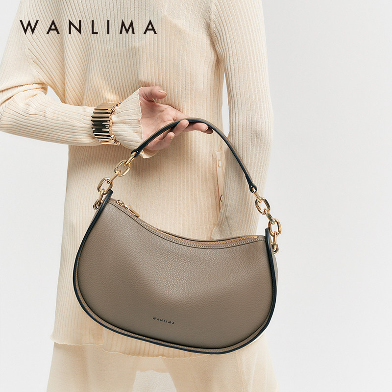 【元旦礼物】万里马小众设计月牙包复古牛皮腋下包小包手提单肩包