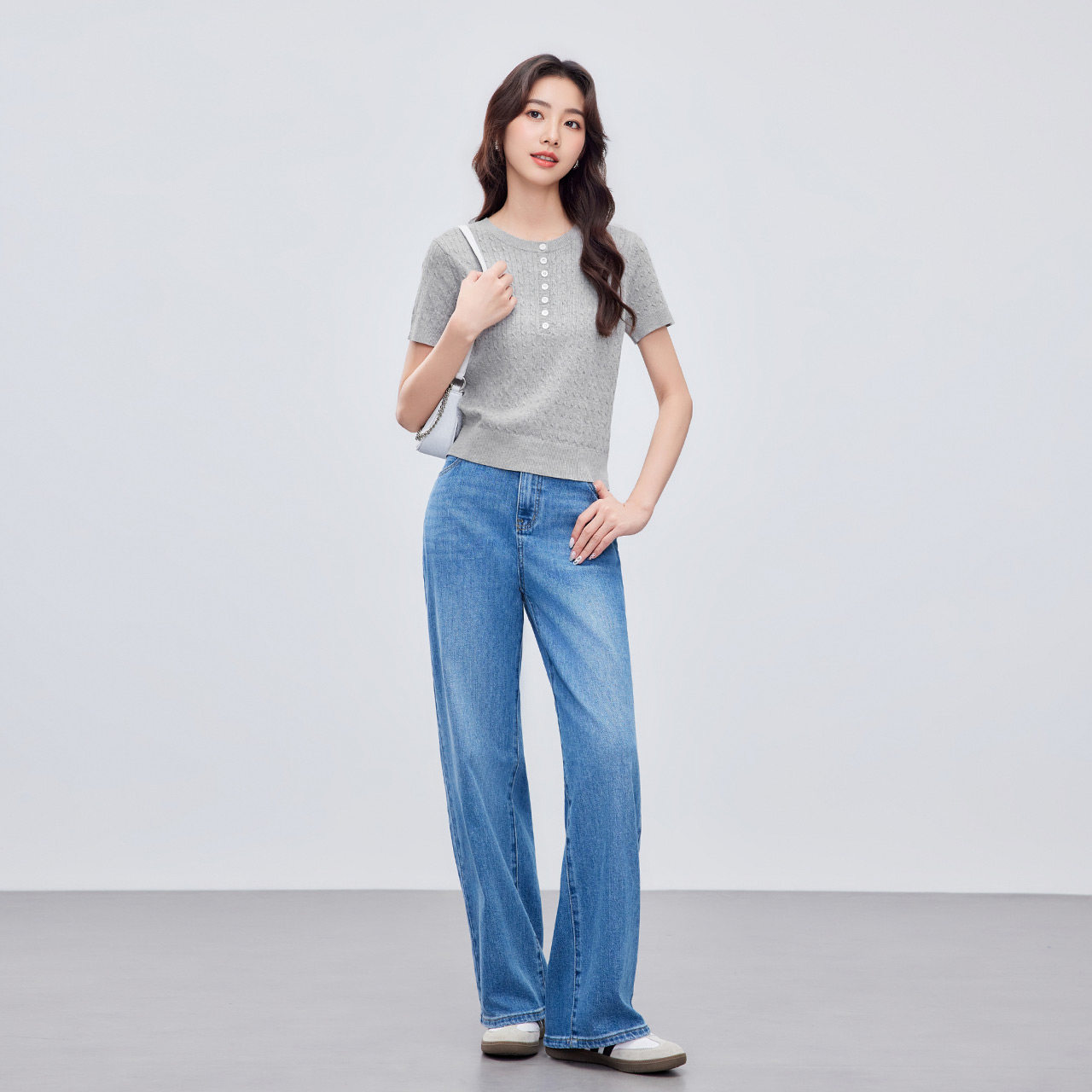 IEF/爱依服2026春夏新款通勤圆领日系文艺气质百搭显瘦女毛织上衣