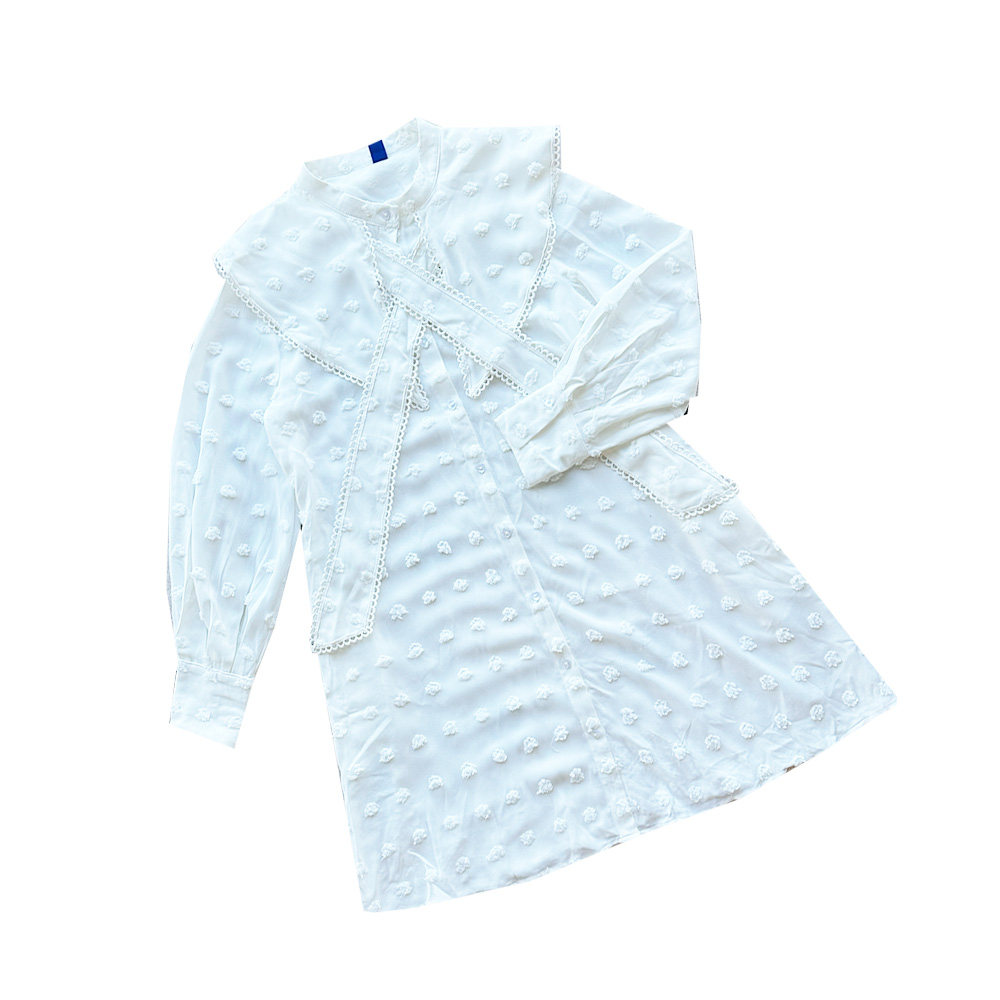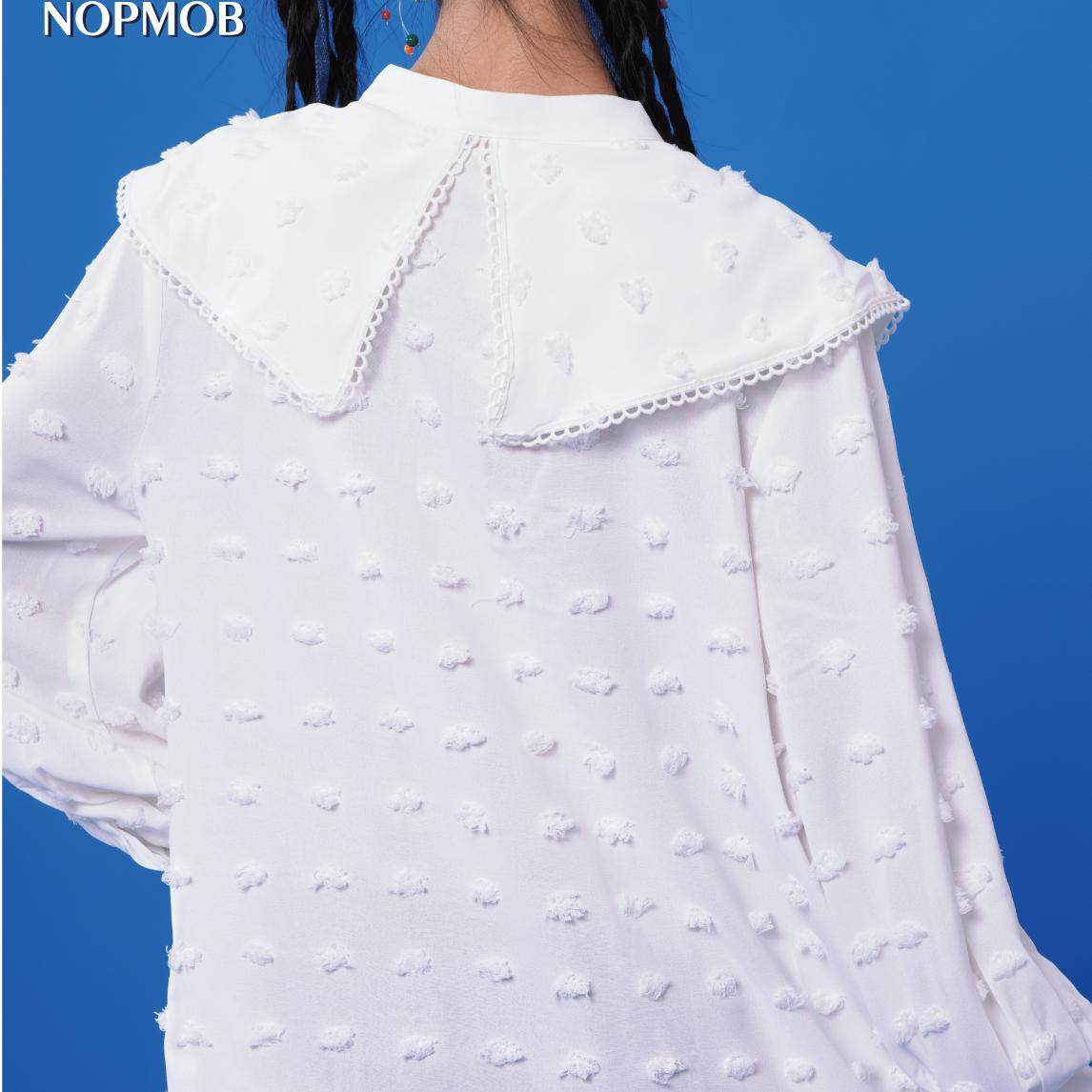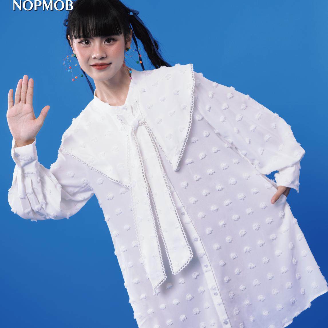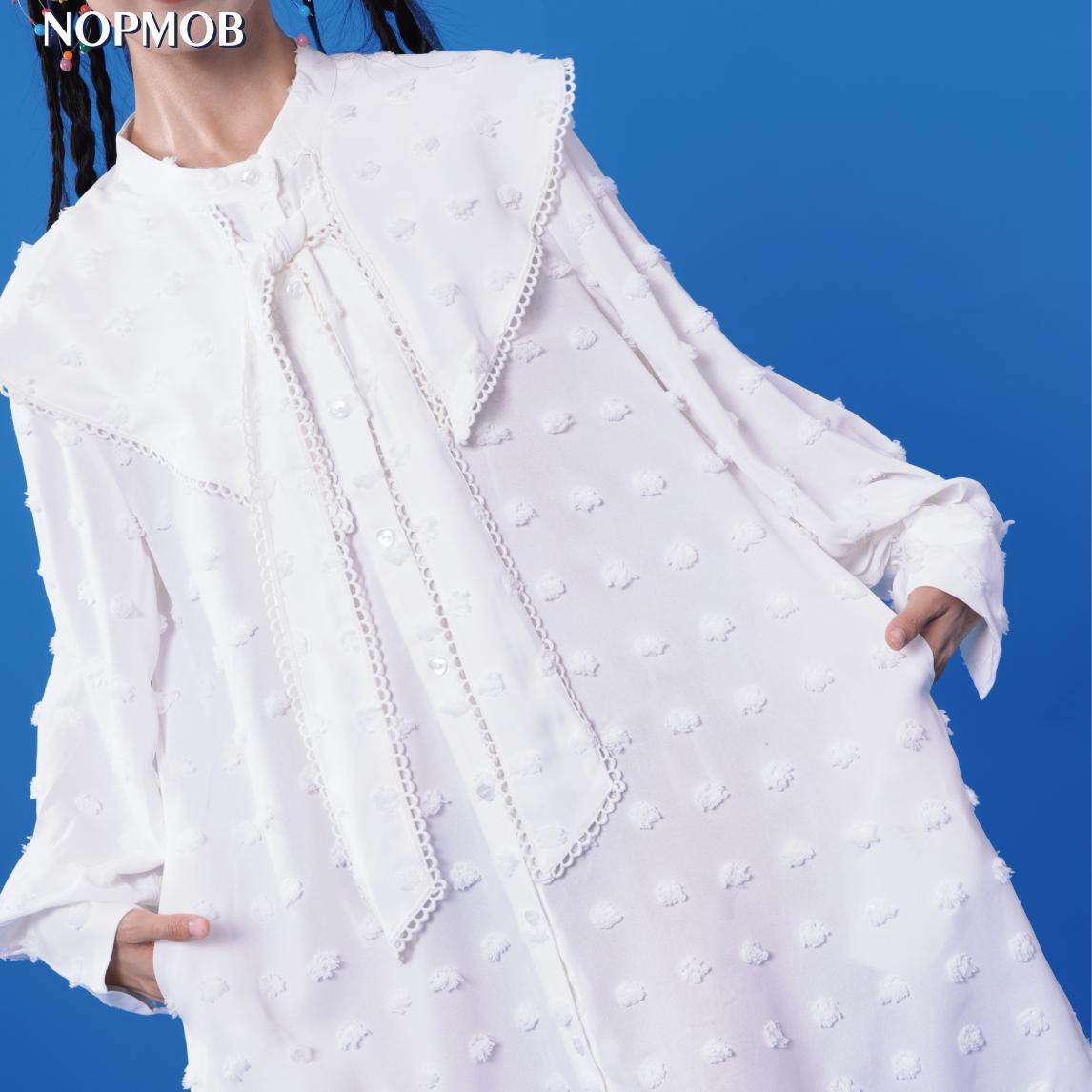 NOPMOB 奶油小墩 领带蝴蝶结娃娃领白色小个子宽松长袖衬衫连衣裙