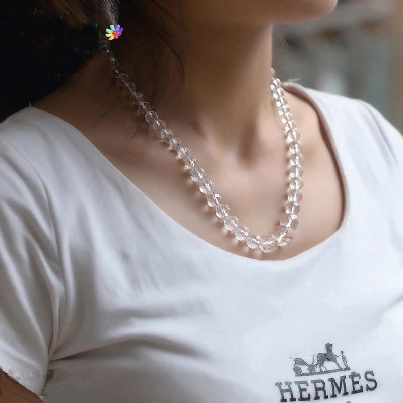 天然5A白水晶项链 女款128刻切面全晶体塔链挂件生日礼物原石饰品