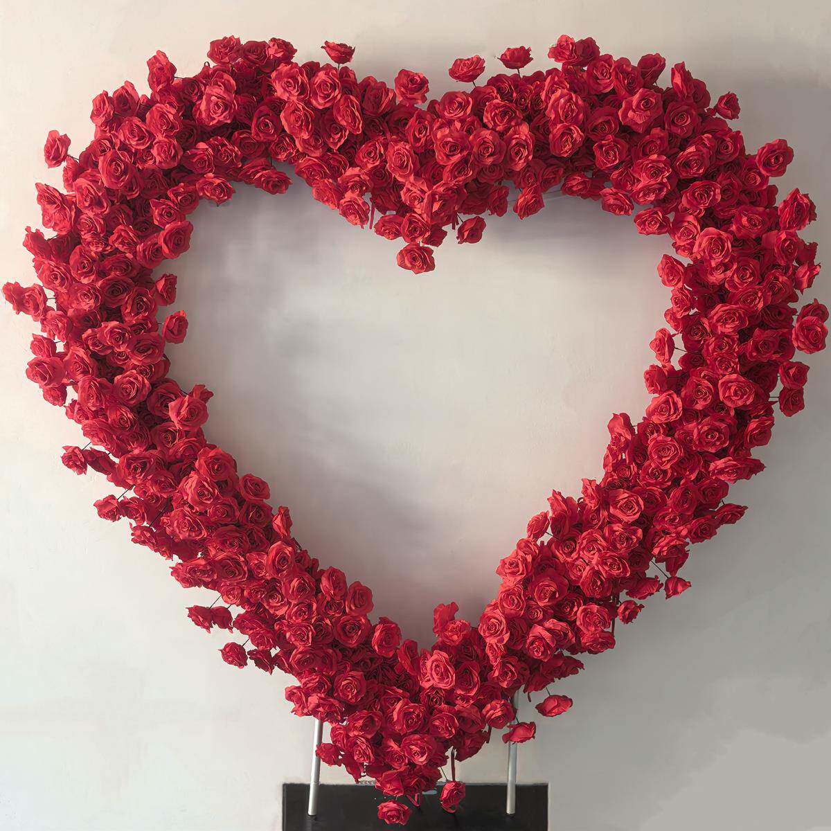网源头工厂仿布底红色心形拱门GM002景墙玫瑰婚庆红打卡真仿真花