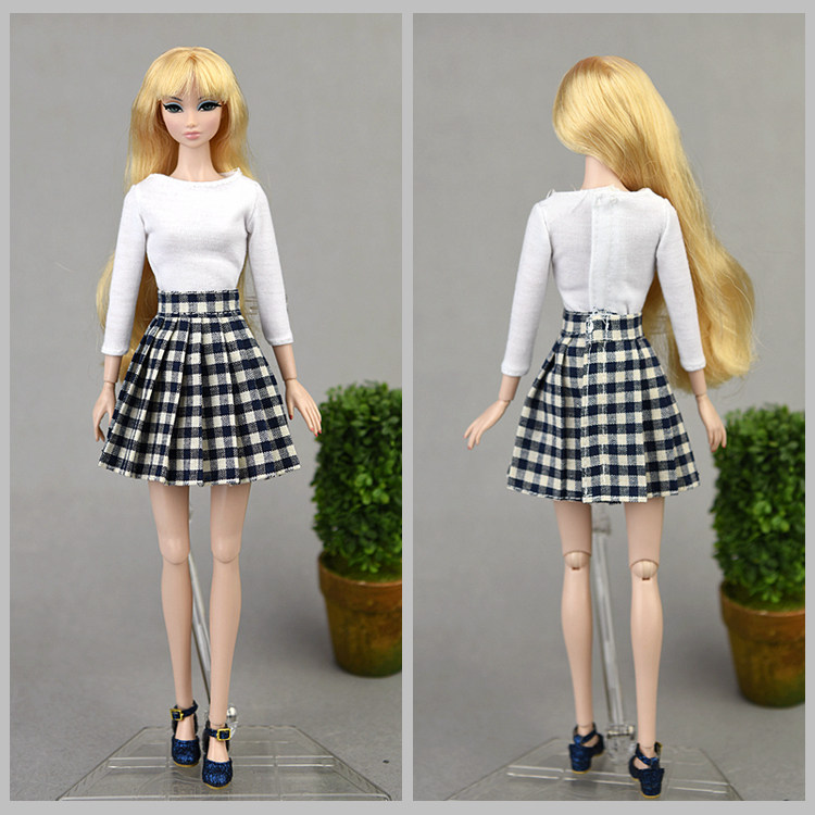 30cm心怡可儿6分娃娃衣服装超模桃子 blythe小布格子百褶裙jk短裙