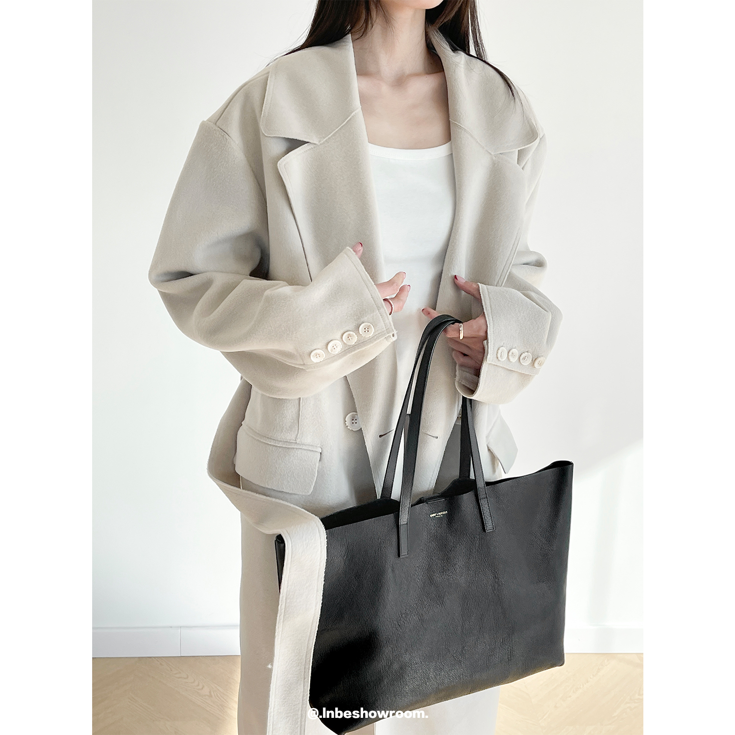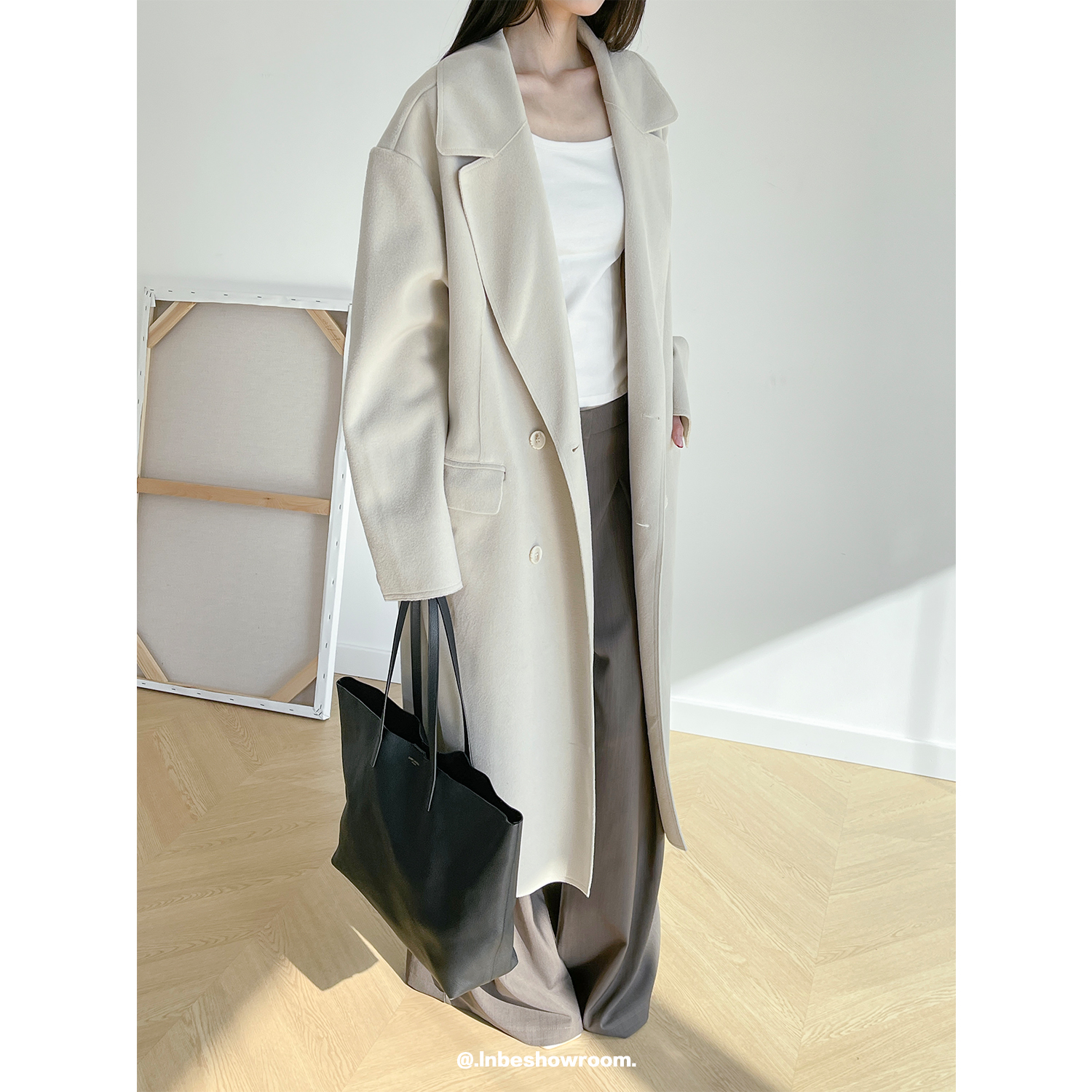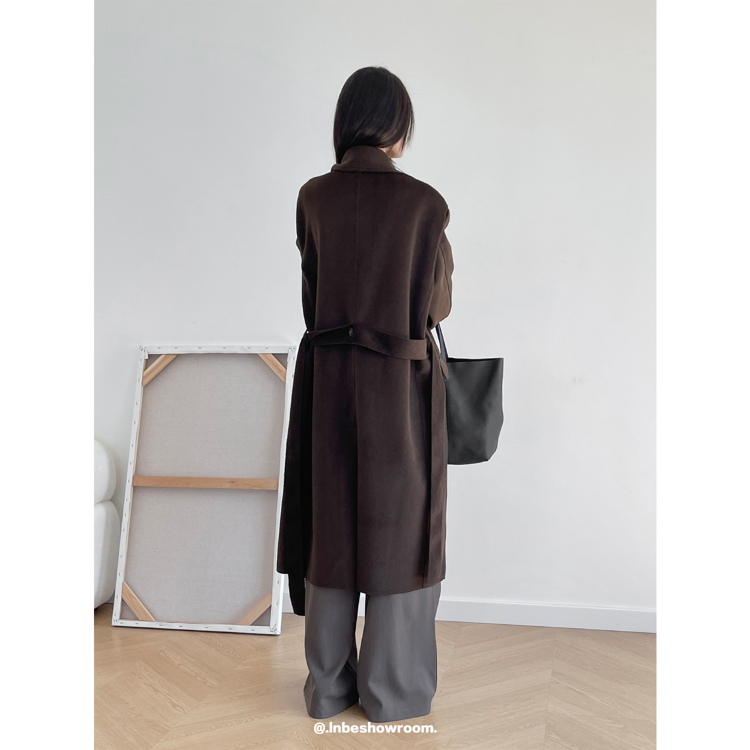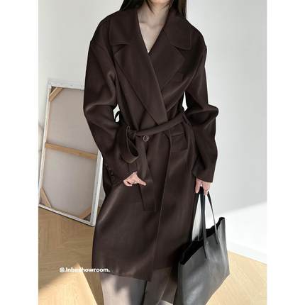 Inbeshowroom棕色双面毛呢大衣外套女冬高级感过膝超长款呢子外套