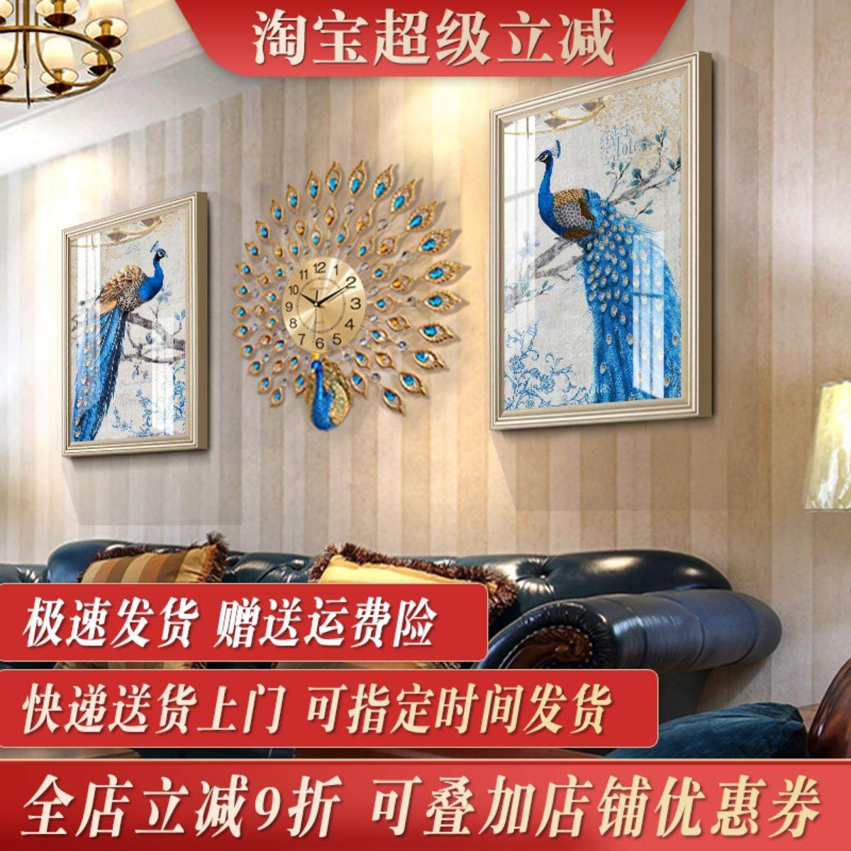 欧式客厅装饰画轻奢大气沙发背景墙壁画饭厅大厅孔雀简欧风格挂画