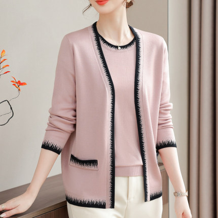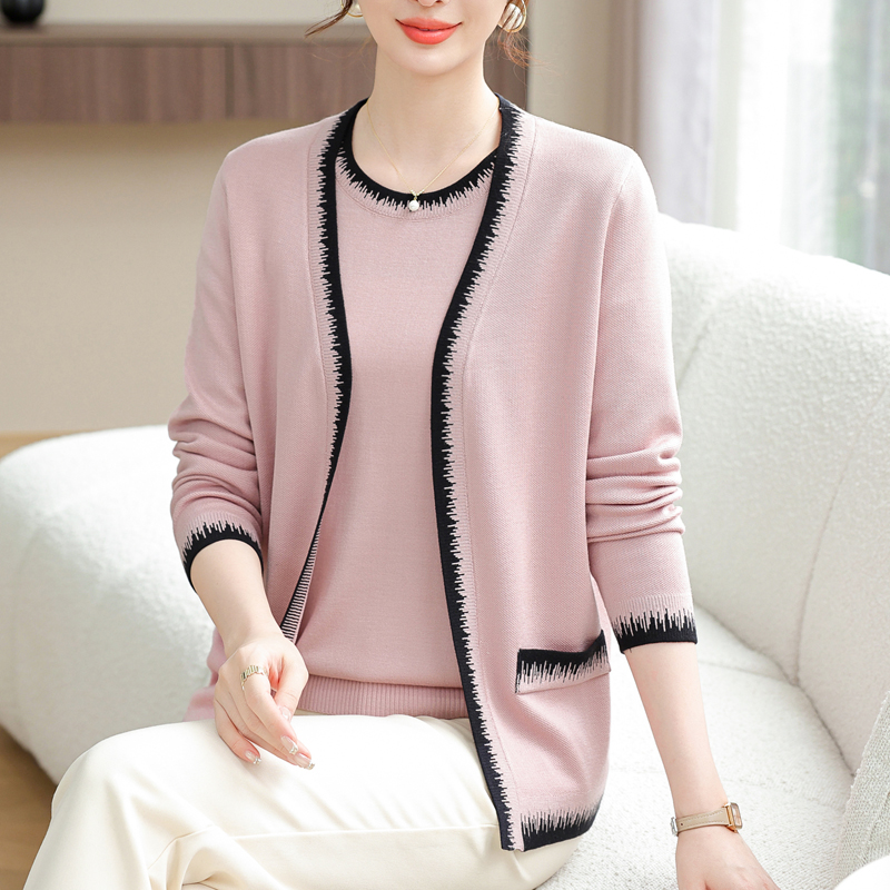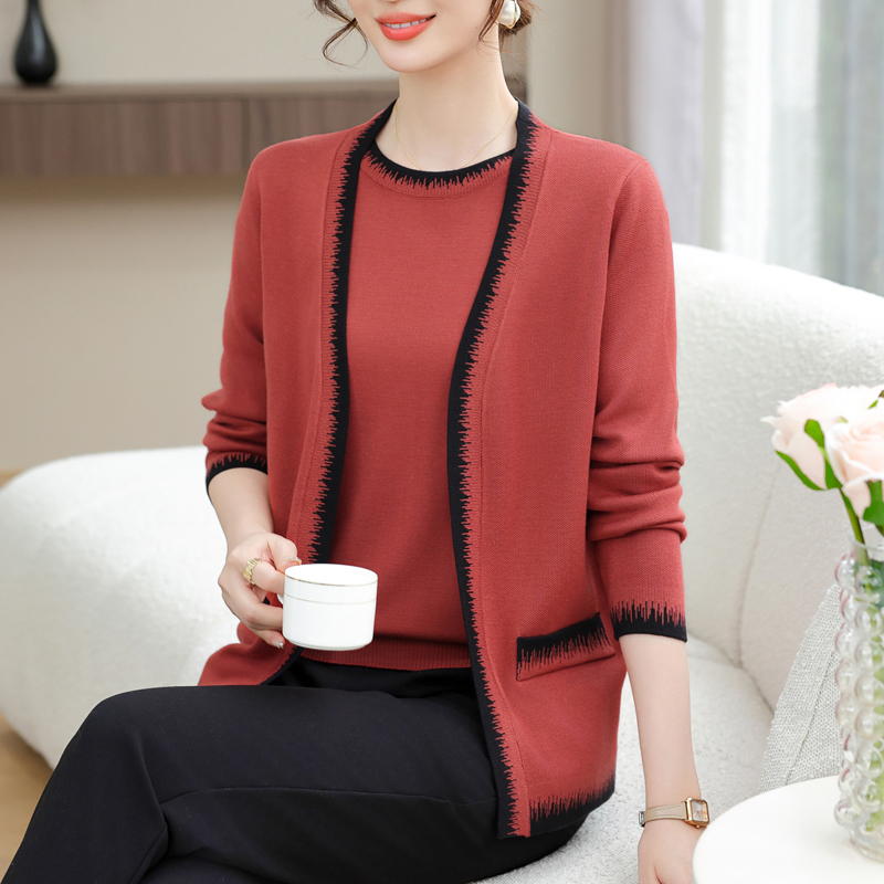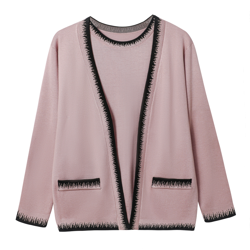 中年妈妈春装冰丝针织外套加肥加大码女装时尚薄款上衣两件套开衫