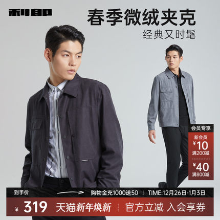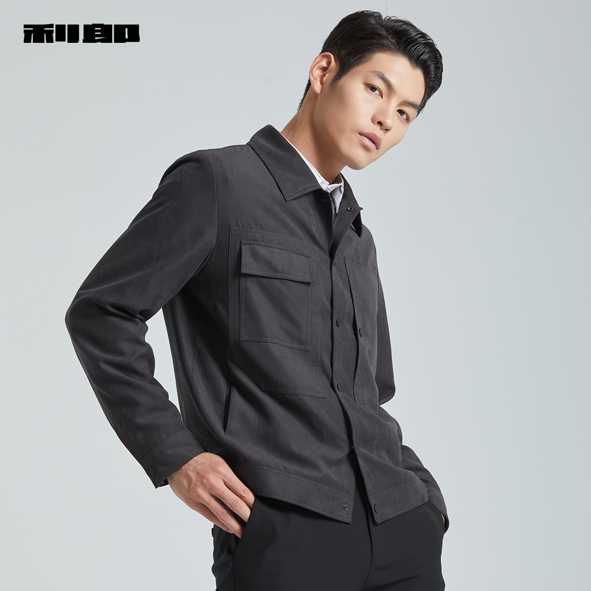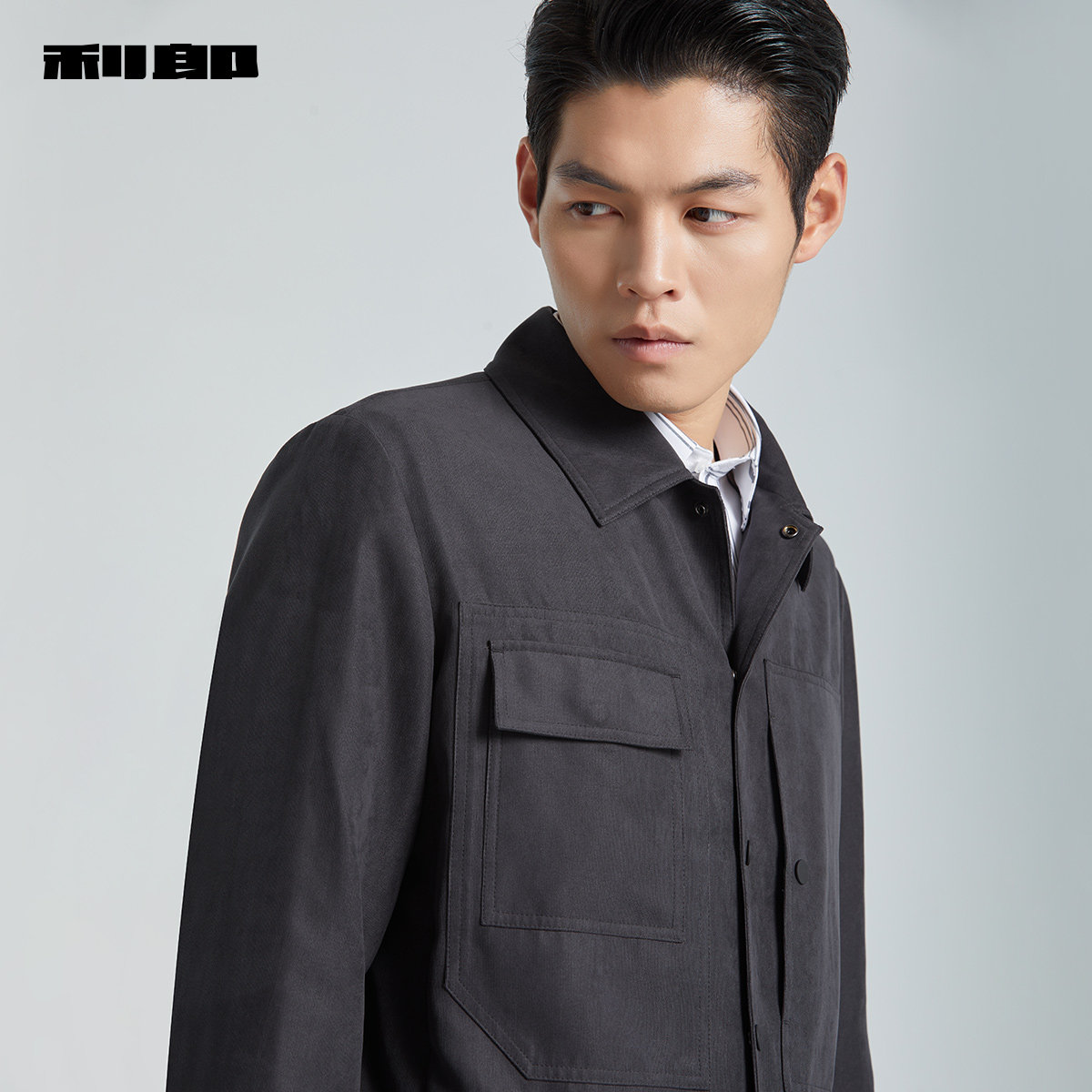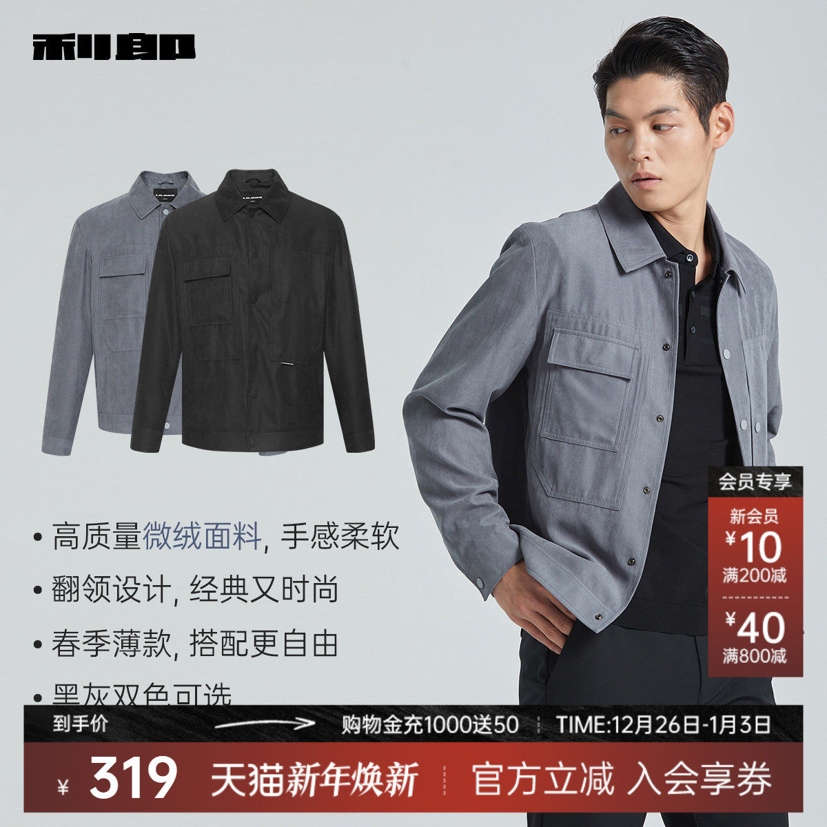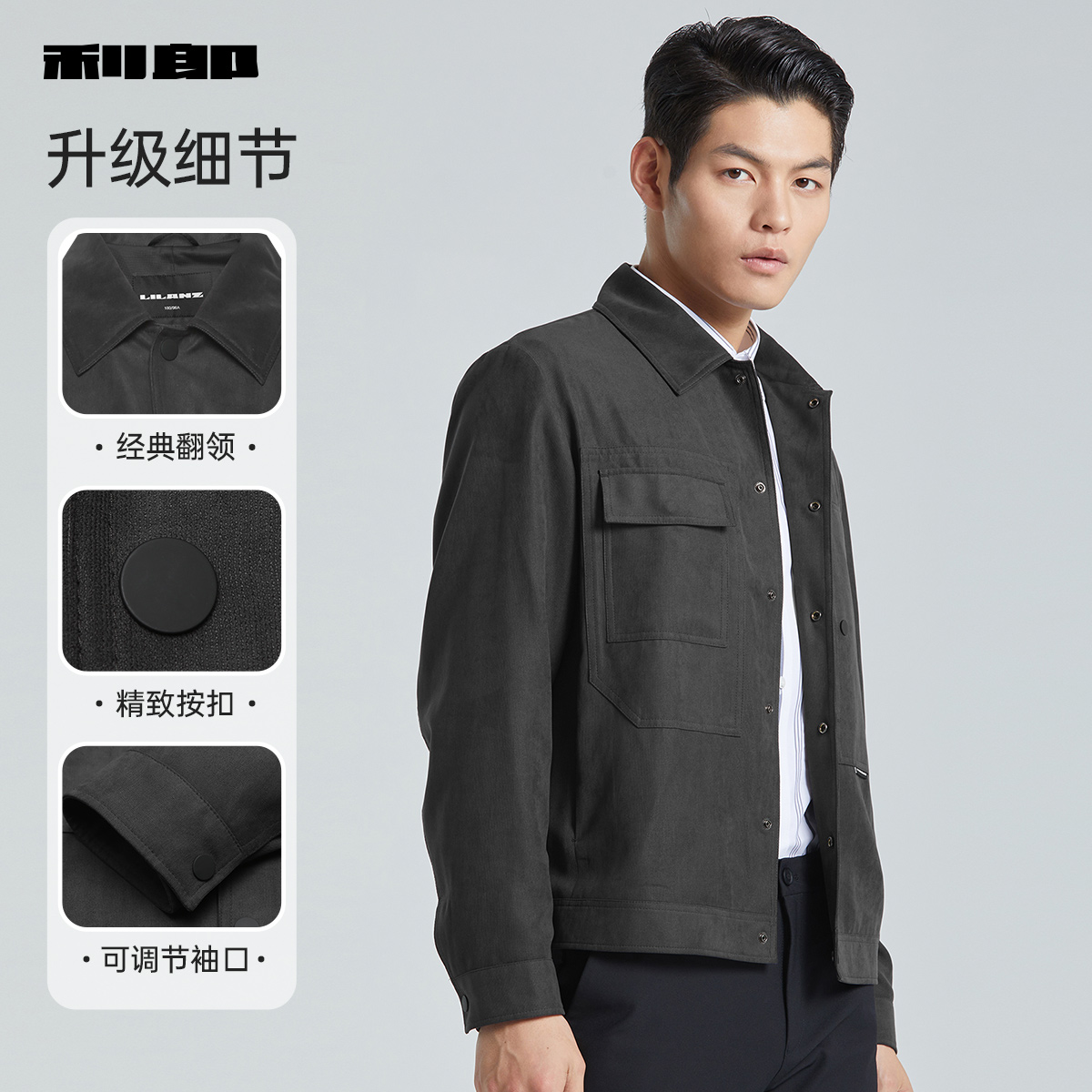 利郎官方短款夹克外套男2024春秋新款商务翻领质感风衣外套男装