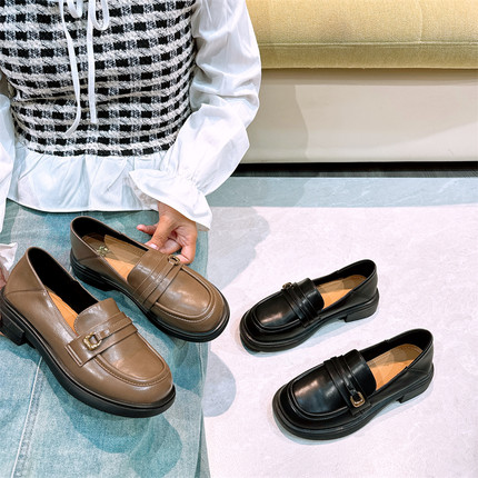 真皮!秀气厚底乐福鞋!专柜女鞋平底英伦风小皮鞋百搭D921321-2