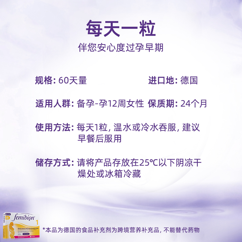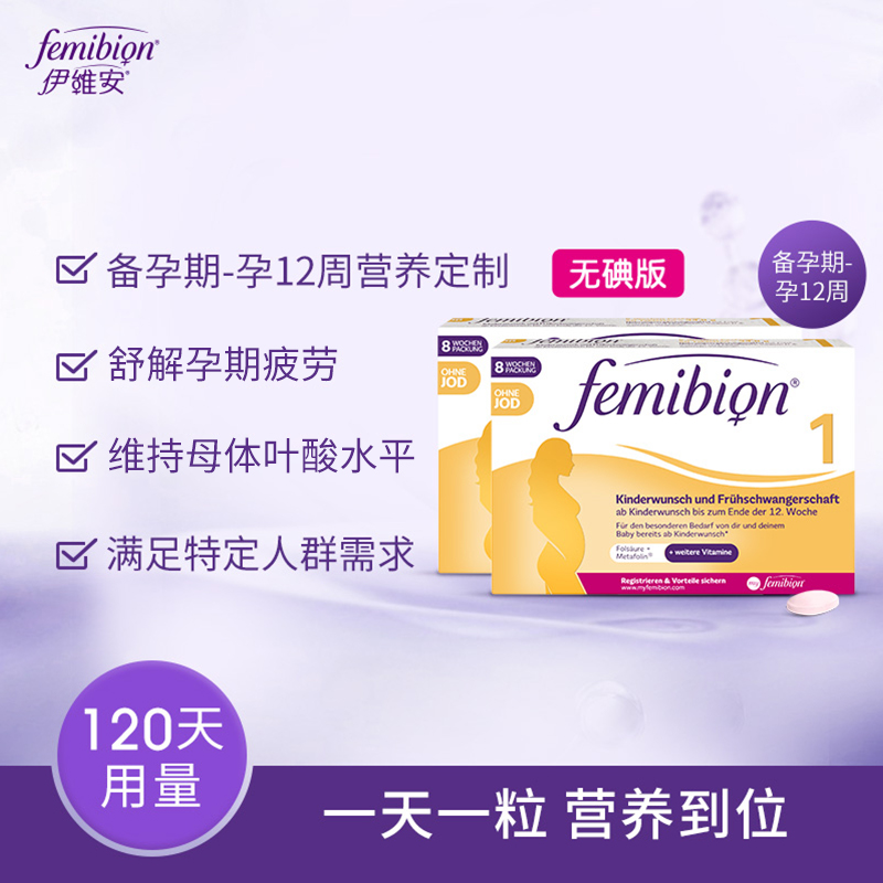 伊维安Femibion无碘孕早期1段活性叶酸多维生素60天*2(120天量)