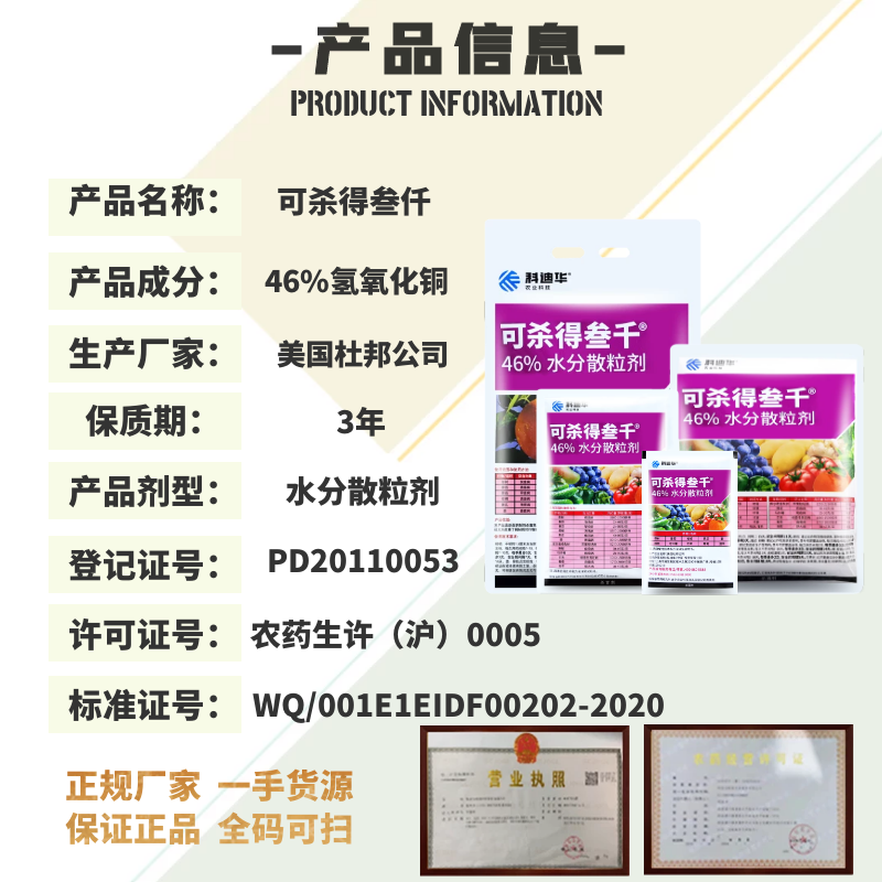 美国杜邦 可杀得三千 可杀得叁千 46%氢氧化铜番茄溃疡农药杀菌剂