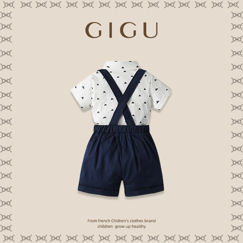 周岁礼服男宝夏英伦风西装背带裤套装一岁男童衣服生日帅气夏装