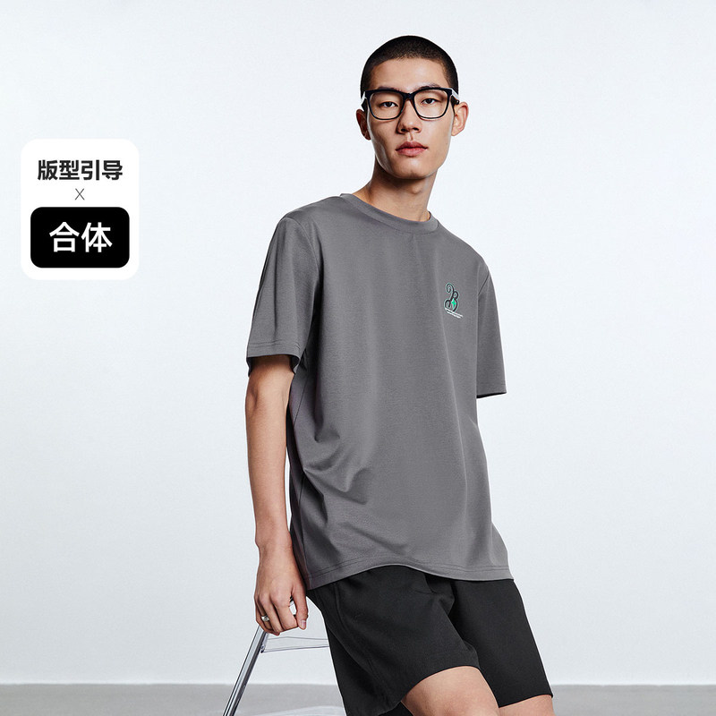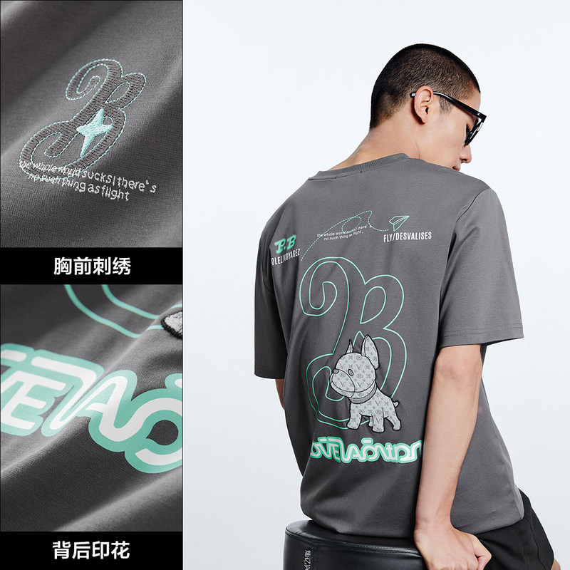 【断码钜惠】太平鸟男装 卡通图案字母刺绣短袖休闲T恤